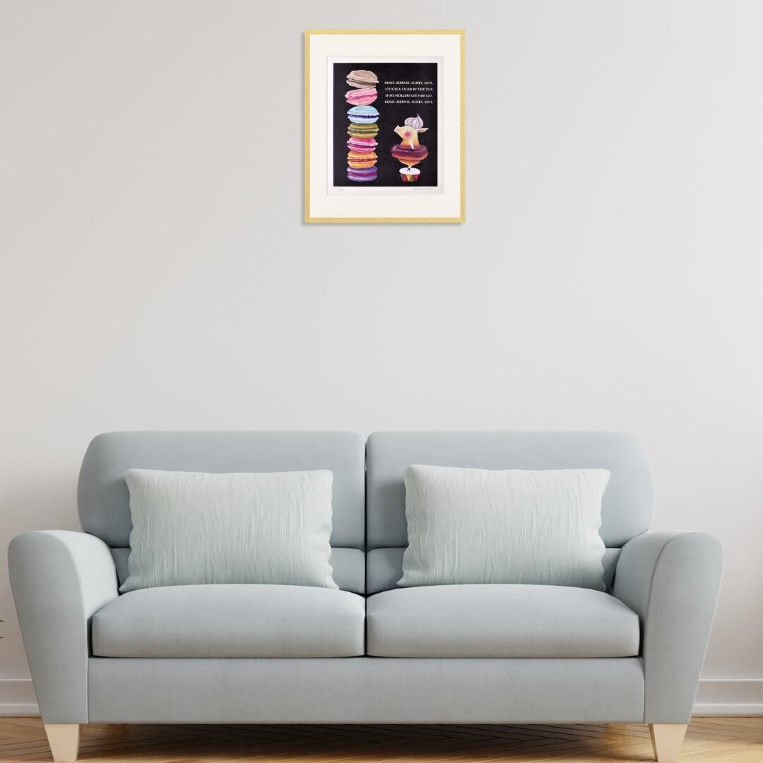 この額縁付きイラストは、お部屋を明るく華やかに彩るインテリアアートです。色とりどりのマカロンの可愛らしさと、ユーモラスなブタの表情が、見る人に自然と笑顔を届けます。キッチンやダイニング、カフェスペースに飾れば、空間に甘い香りが漂うような心地よい雰囲気に。額縁付きなのでそのまま壁に飾るだけで、おしゃれで温かみのある空間づくりが叶います。可愛いけれど大人っぽいアートとして、ギフトにもおすすめの一枚です。