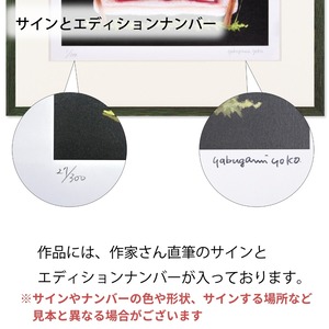 図柄ごとに作家のサイン、エディションナンバーつきの版画作品で数量限定販売になっています。