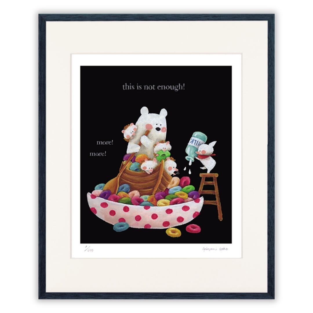 作品の中で描かれている言葉は “this is not enough! more! more!”(まだ足りないよ!もっと、もっと!)。