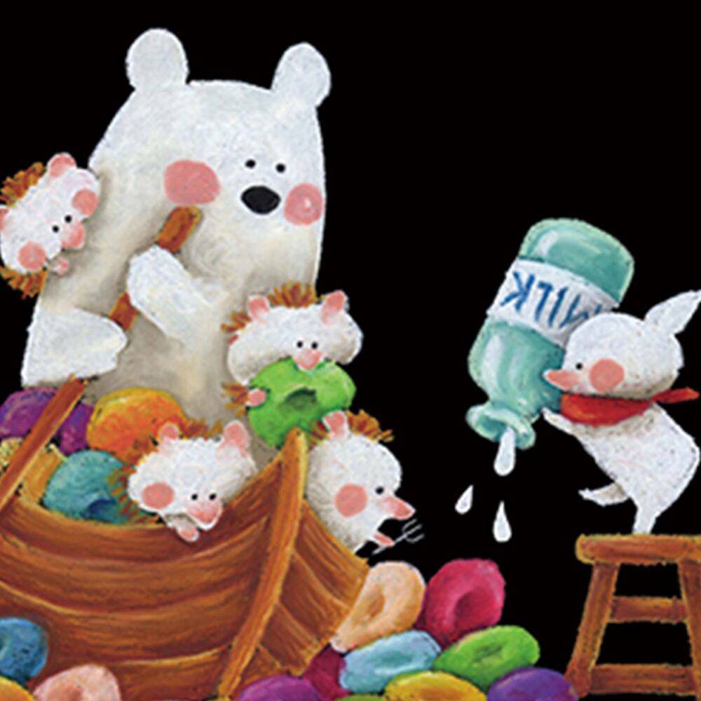 はしごの上から「MILK」と書かれたボトルを傾けるハリネズミもいて、楽しげなやりとりが伝わってくるようです。