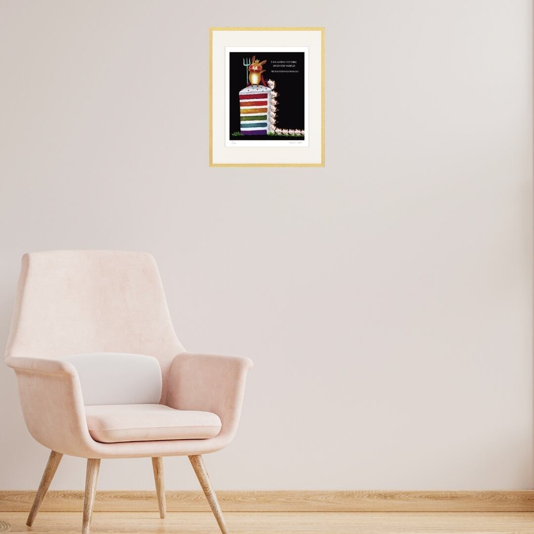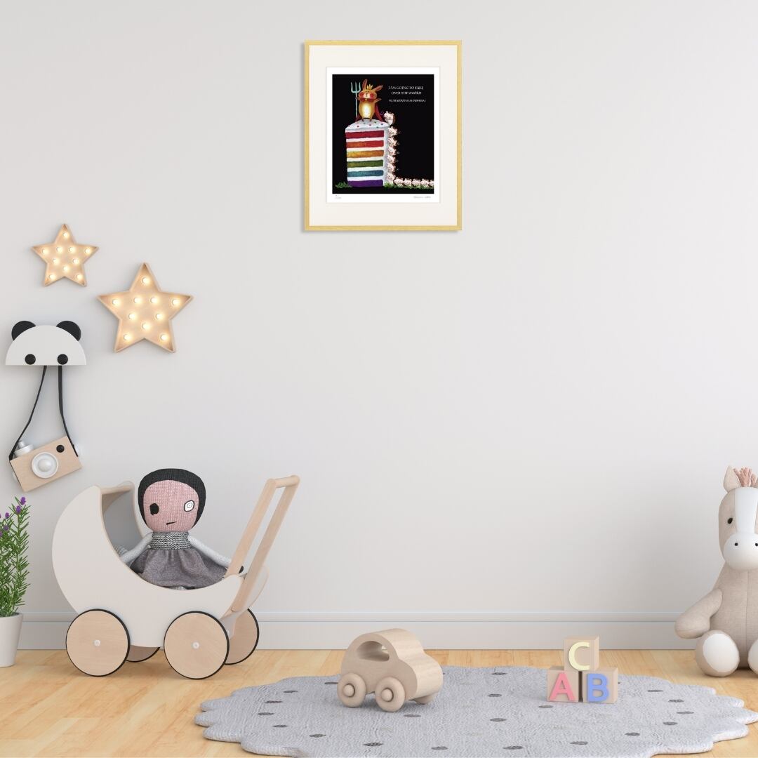 この額縁付きアートは、見る人に「楽しむ心」を思い出させてくれるようなポップでユーモラスな魅力に満ちています。カラフルなレインボーケーキが空間を明るく彩り、リビングやダイニング、子ども部屋などに飾れば、日常の中に小さなワクワク感をプラスしてくれます。明るい木製フレームが作品の軽やかさを引き立て、インテリア全体にぬくもりを添えます。シンプルな空間にも映えるデザインで、北欧テイストやナチュラルスタイルの部屋にもよく似合います。ユーモアあふれるテーマながら、色の構成が洗練されているため大人の遊び心にもぴったり。見ているだけで笑顔になり、創造力を刺激してくれる楽しいアートです。