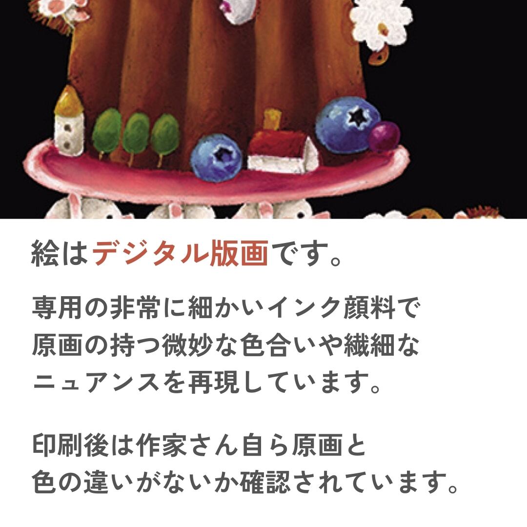 チョークアートで多数の実績を持つ「やぶがみようこ」の作品が版画になりました。可愛らしくてちょっとユニークな動物たちによる癒しのアートです。