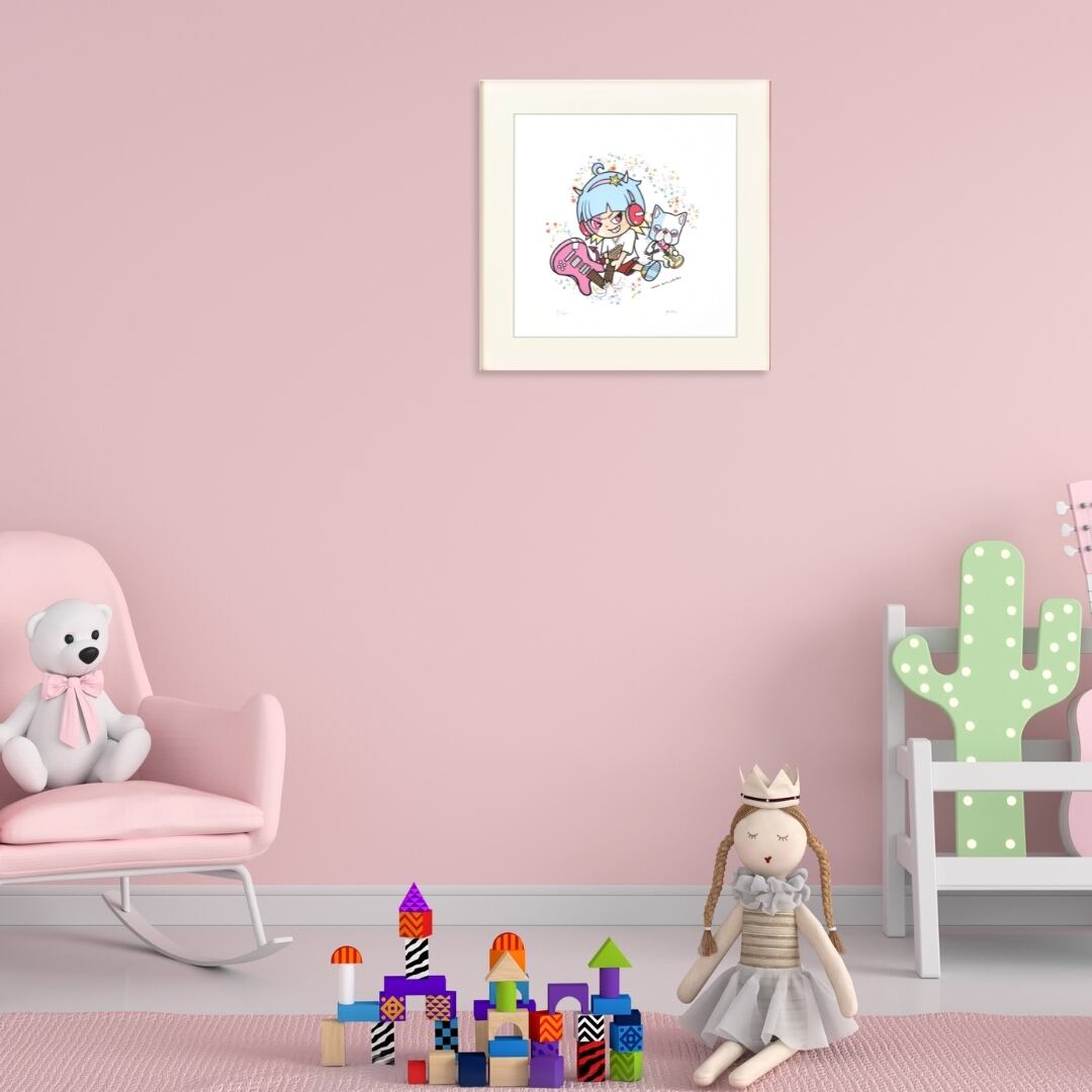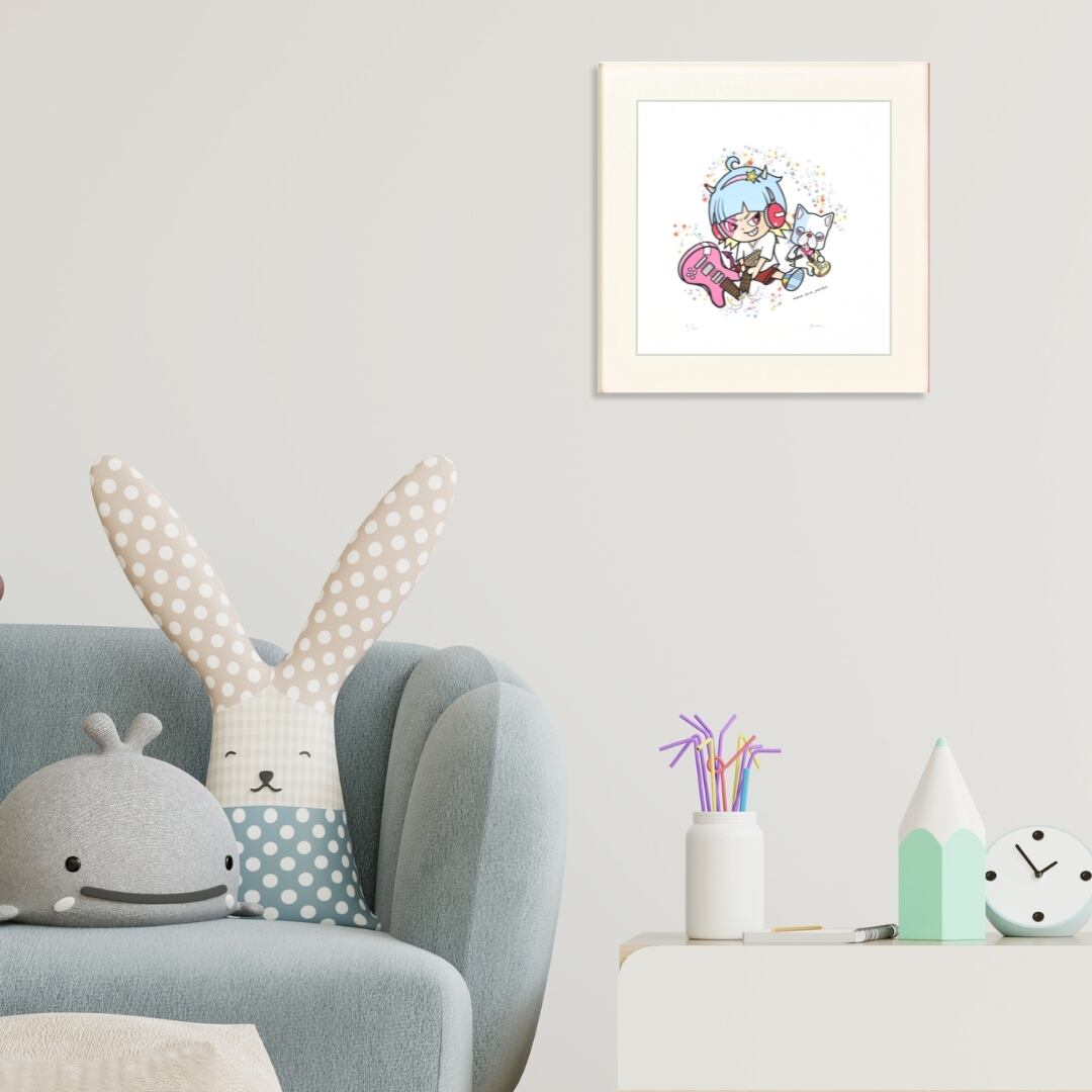 ホワイトフレームが作品の鮮やかな色彩を際立たせ、空間を軽やかに彩ります。ポップアートらしい楽しさとモダンなセンスが融合し、リビングや子ども部屋、ワークスペースにもぴったり。壁に飾るだけで遊び心と活気を与え、日常にポジティブなエネルギーを運びます。カジュアルな雰囲気の中に洗練を感じさせる、インテリアアートとしておすすめの作品です。
