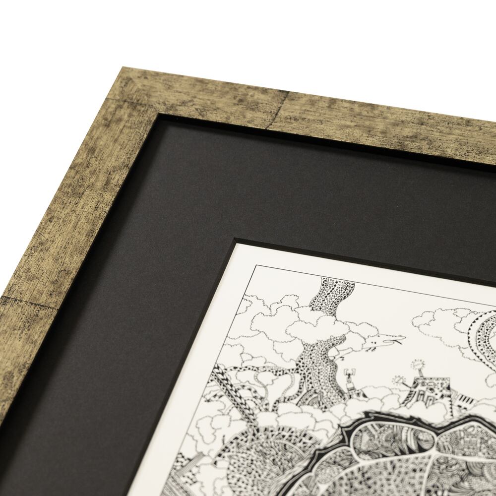 緻密な線描が織り成すこの作品は、インテリアアートとしても強い存在感を放ちます。白と黒の対比による力強さと繊細さが融合し、アートの持つ奥行きを体感できる仕上がりです。イラストという表現形式ながら、緻密な描写と構造の重厚感は一点の絵画としての価値を高めています。額入りアートとして飾れば、空間に格調高い雰囲気を与え、見るたびに新しい視点をもたらしてくれるでしょう。日常に深い余韻と静かな力を添える作品であり、アートを暮らしに取り入れる魅力を存分に味わえます。