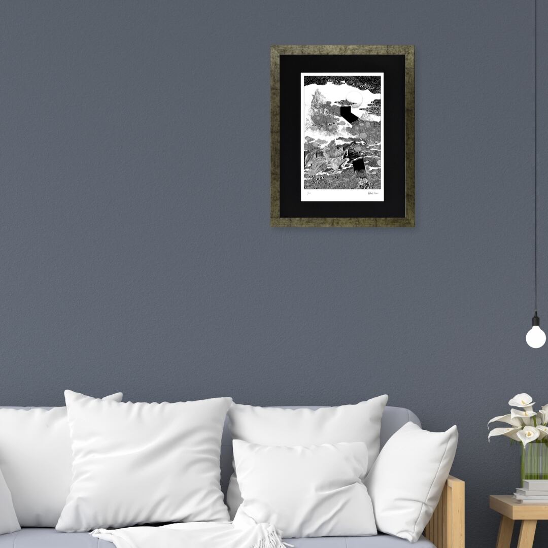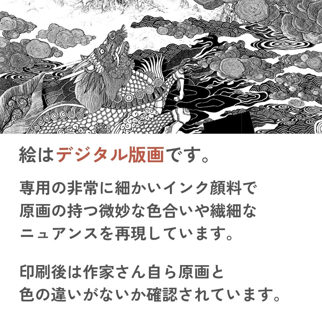 細部まで緻密に描かれた本作は、空間に独特の存在感を与えるインテリアアートです。伝統的なモチーフとモダンな構成が融合し、額入りアートとして仕上げられた一枚は、飾ることで空間を一層洗練させます。モノトーンの力強いコントラストが、シンプルな部屋やモダンなインテリアと自然に調和しながらも、強烈な印象を残します。イラスト的な親しみやすさを保ちつつ、芸術作品としての深みを併せ持ち、日常の中に特別な時間を与えてくれる一作です。アートを取り入れることで、空間に静かで力強いアクセントを加えたい方におすすめです。