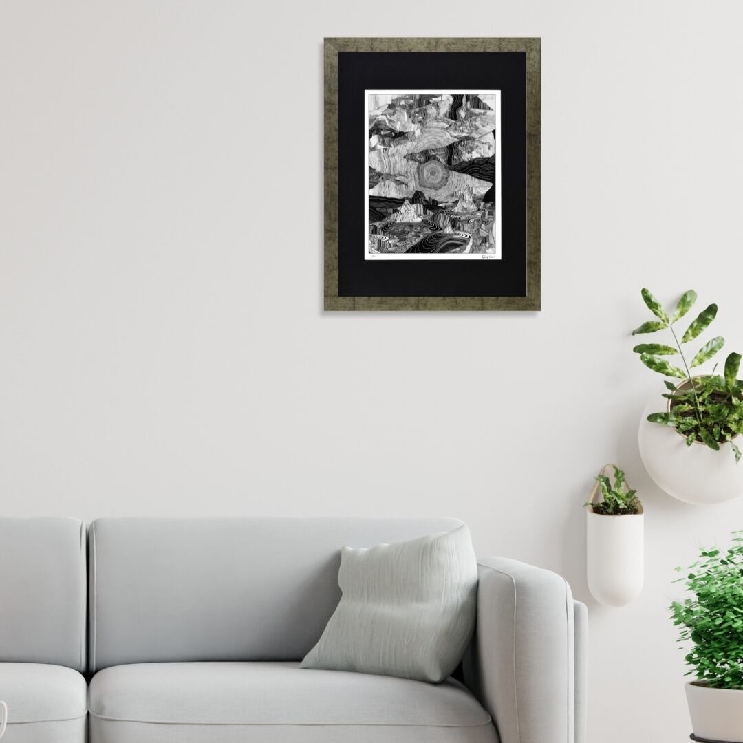 細密な線の重なりが印象的な本作は、空間にモダンな雰囲気を添えるインテリアアートです。大胆でありながら繊細さを失わない構成は、静謐さと力強さを併せ持ち、額入りアートとして強い存在感を放ちます。モノクロームの表現がどんな空間にも溶け込み、アートのもつ奥深い世界観を身近に感じさせてくれます。イラスト的な線の美しさと、芸術作品としての緻密な完成度が融合し、部屋に飾ることで日常を豊かな時間へと変える力を持っています。シンプルでありながら印象的なインテリアアートを求める方にふさわしい一枚です。