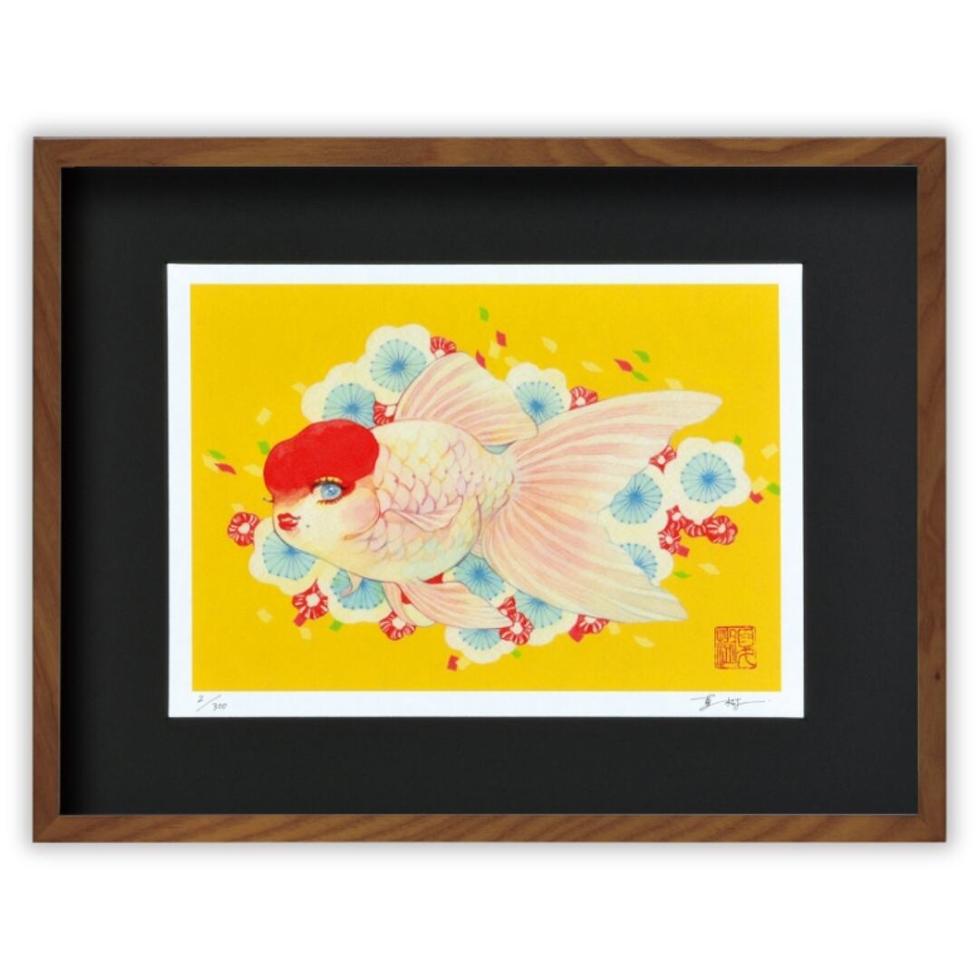 華やかでどこか艶やかな金魚たちの世界が特徴の「岩本夏樹」の作品が版画作品に。