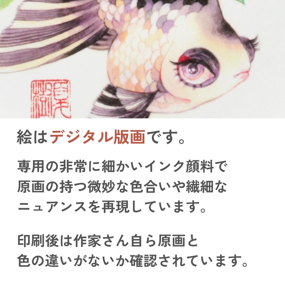 華やかでどこか艶やかな金魚たちの世界が特徴の「岩本夏樹」の作品が版画作品に。