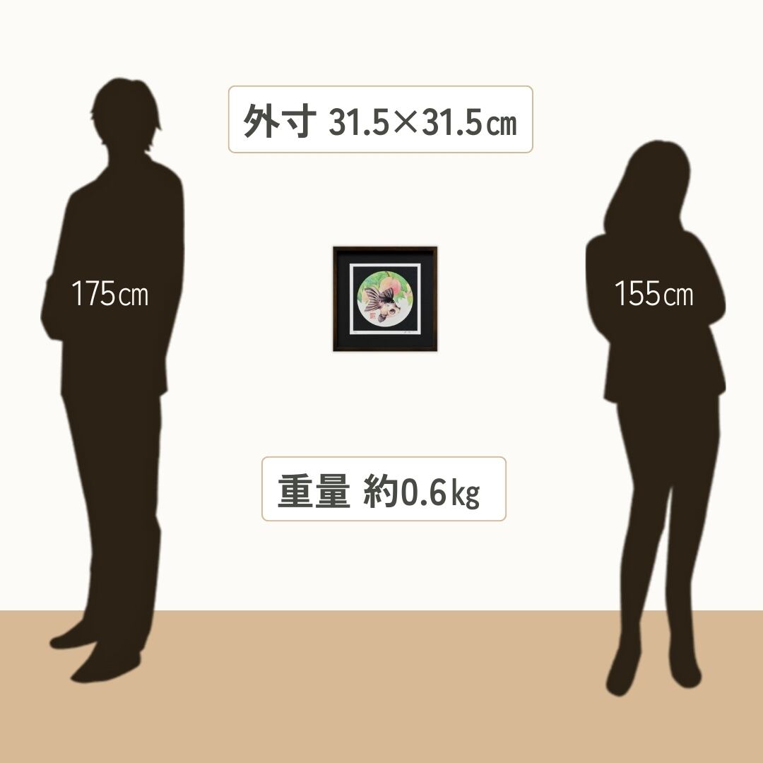 金魚を題材にした絵画は、日本的な美意識と観賞魚の華麗さを融合させたアートとして人気を集めています。本作品では、優雅なパンダ蝶尾と桃が組み合わされ、女性的な艶やかさと季節感を表現しています。桃は古来より長寿や繁栄の象徴とされ、そこに儚く美しい金魚が寄り添うことで、絵全体に特別な意味合いが込められています。水彩ならではの透明感と繊細な筆致が、金魚の柔らかさや女性的な美しさを際立たせ、インテリアアートとしても華やかに空間を彩ります。