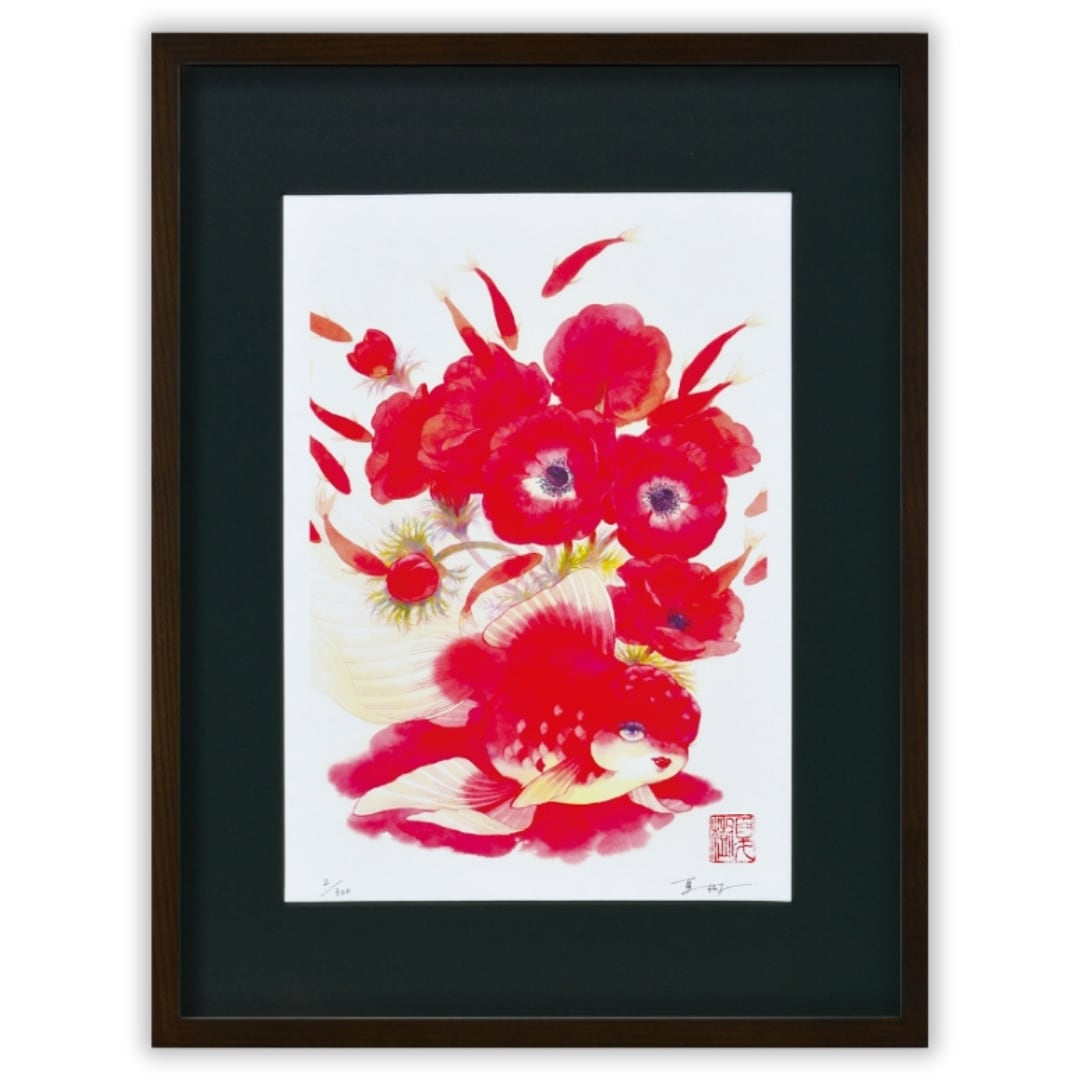 華やかでどこか艶やかな金魚たちの世界が特徴の「岩本夏樹」の作品が版画作品に。