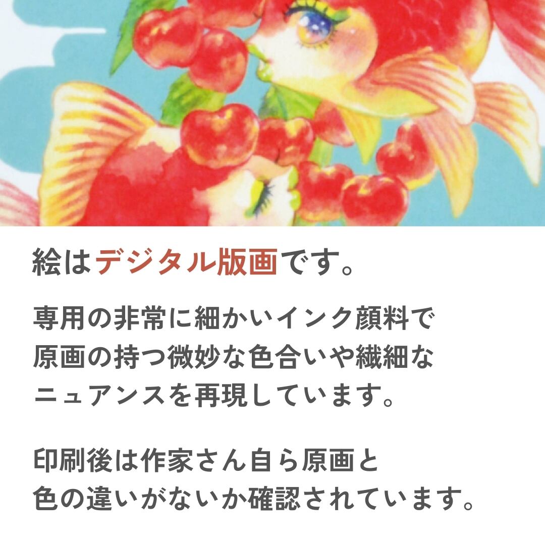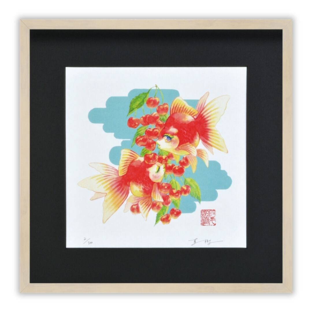 華やかでどこか艶やかな金魚たちの世界が特徴の「岩本夏樹」の作品が版画作品に。