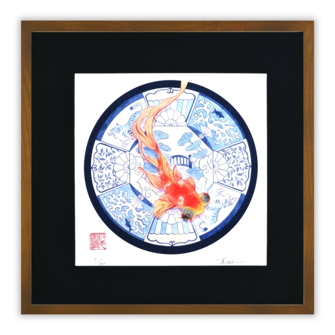 華やかでどこか艶やかな金魚たちの世界が特徴の「岩本夏樹」の作品が版画作品に。