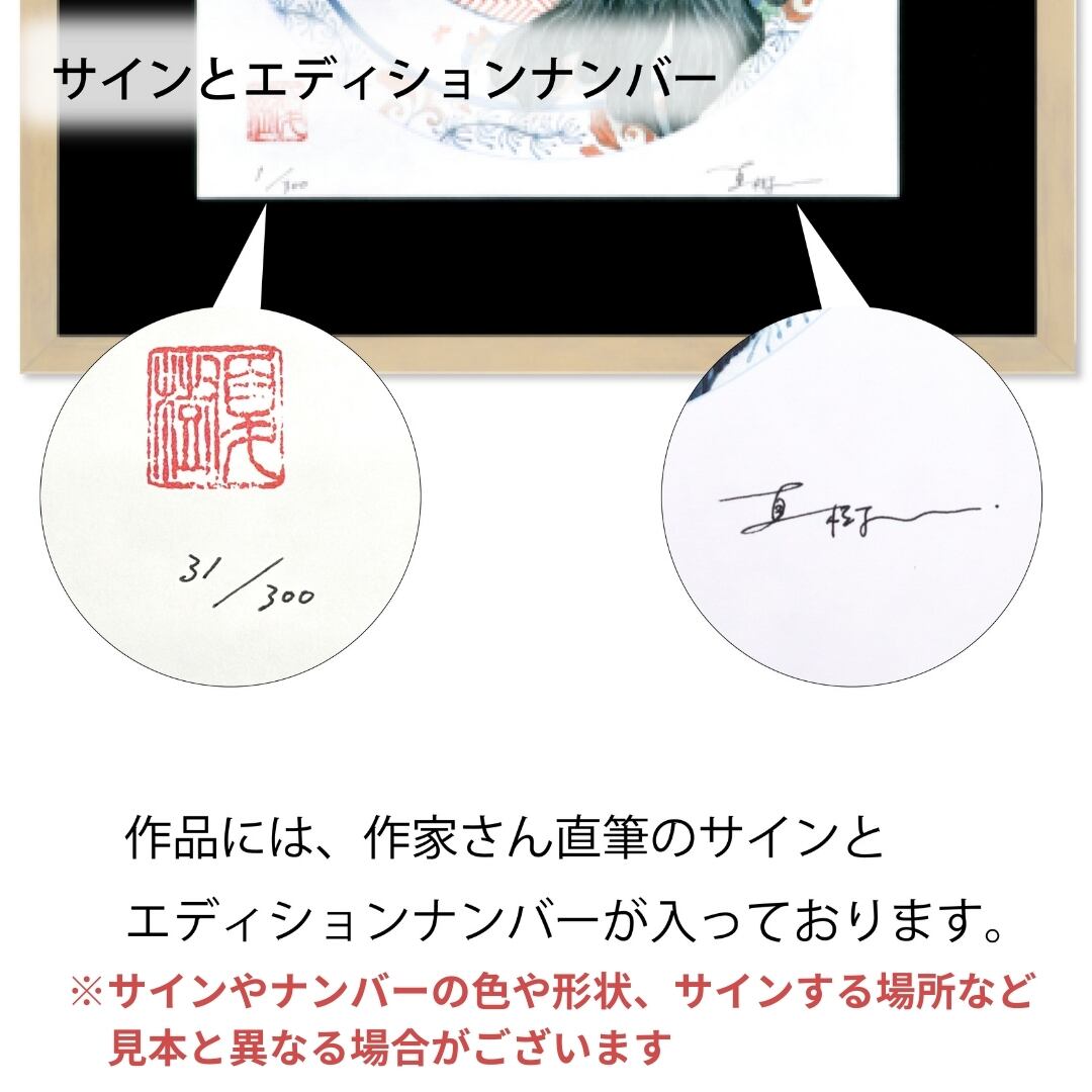 図柄ごとに作家のサイン、エディションナンバーつきの版画作品で数量限定販売になっています。