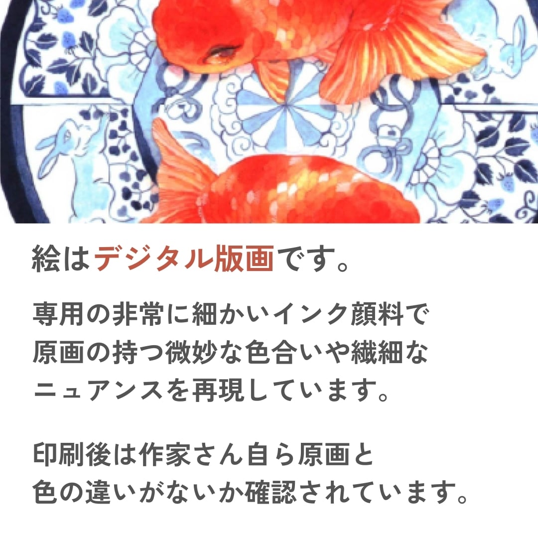 華やかでどこか艶やかな金魚たちの世界が特徴の「岩本夏樹」の作品が版画作品に。