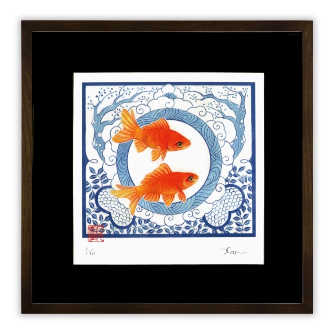 華やかでどこか艶やかな金魚たちの世界が特徴の「岩本夏樹」の作品が版画作品に。