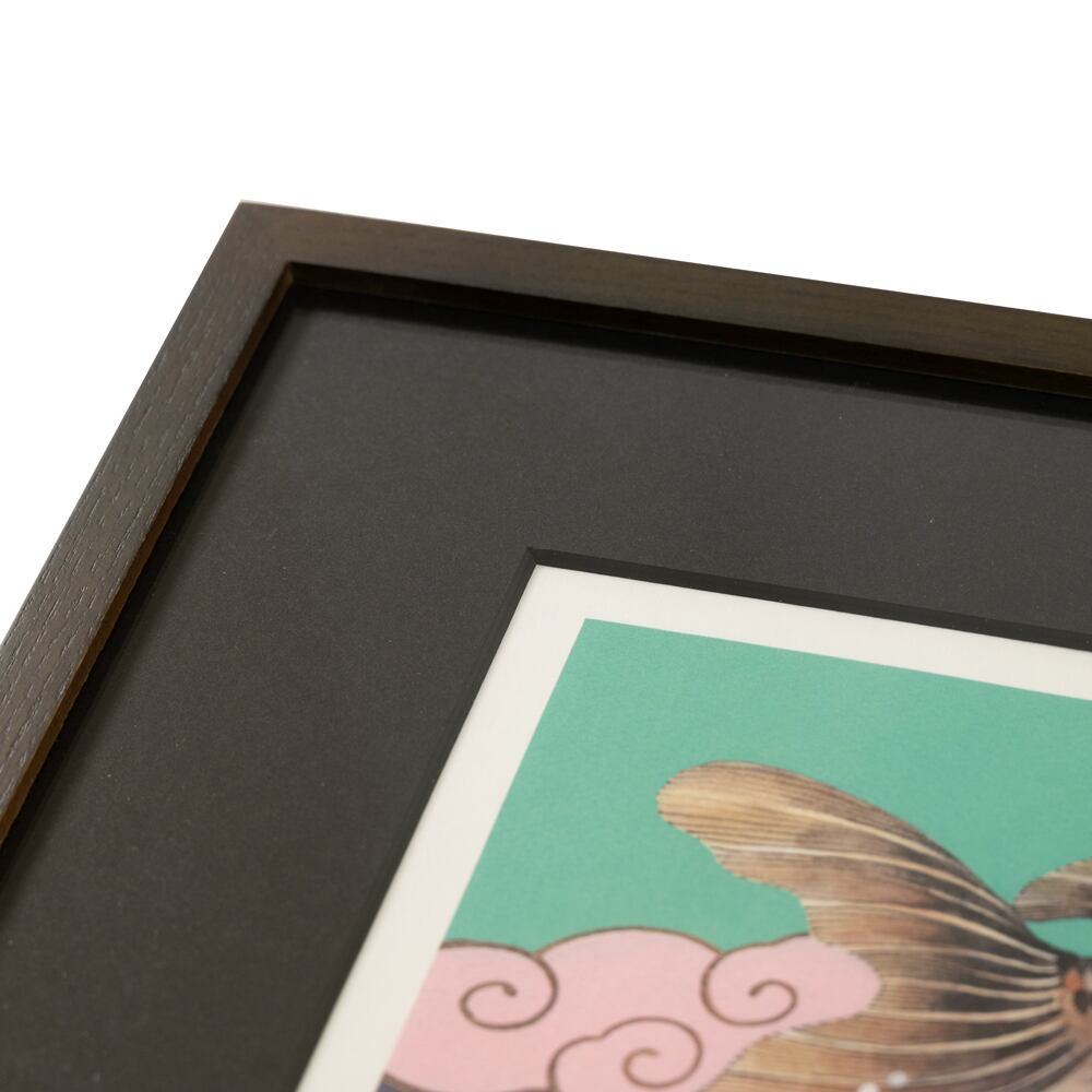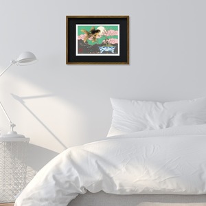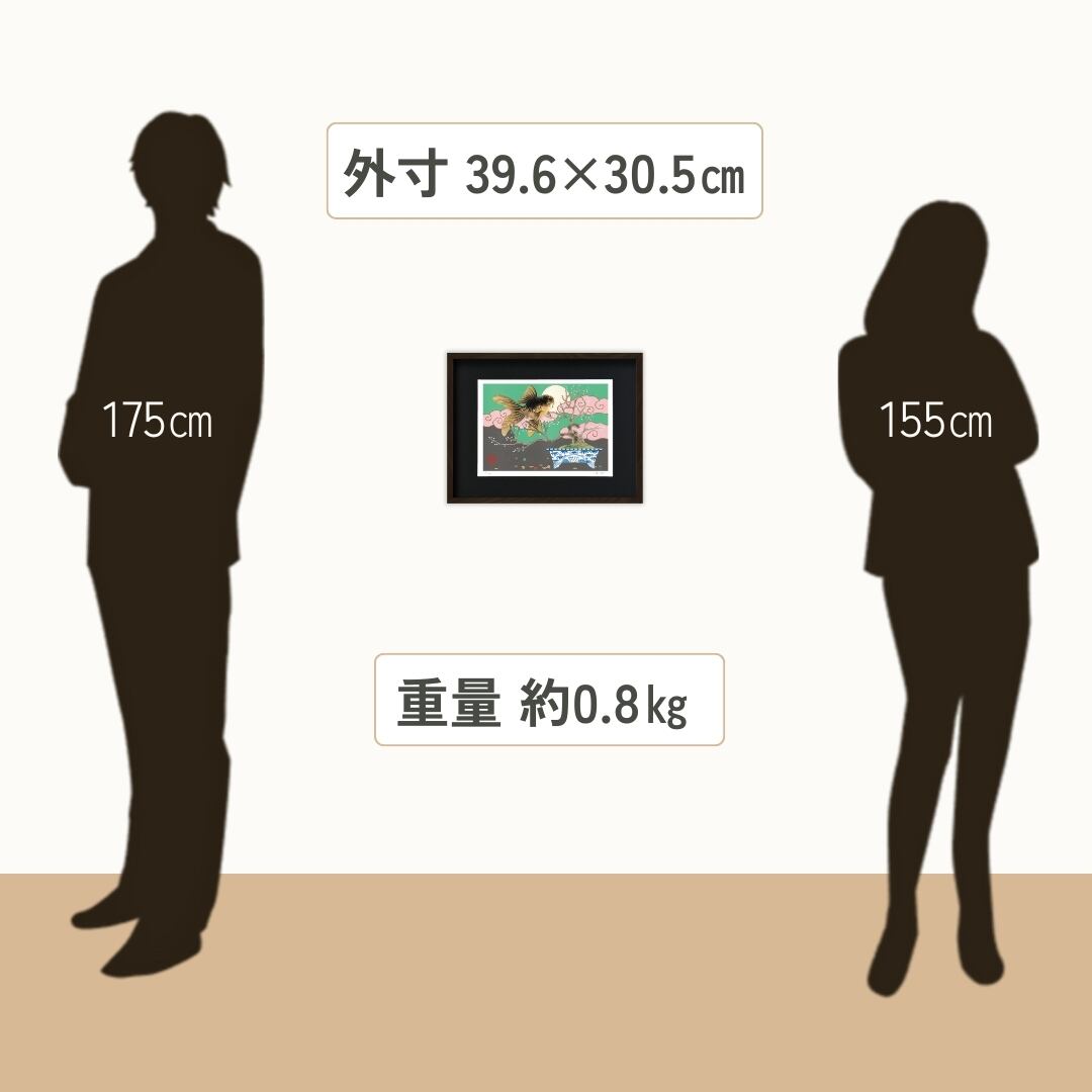 「梅にオランダ」は、梅の花と満月を背景に、オランダ獅子頭の金魚を描いたアート作品です。金魚の重厚な存在感と梅の花の可憐さが対照的でありながら調和し、幻想的で美しい情景を生み出しています。桃色の雲や青絵の器の文様が、和の雅な雰囲気を引き立てつつ、モダンな空間にも馴染む洗練されたデザイン性を持っています。和室やリビングに飾ることで、落ち着きと華やかさを添えるインテリアアートとして最適です。贈答品にもおすすめの逸品です。