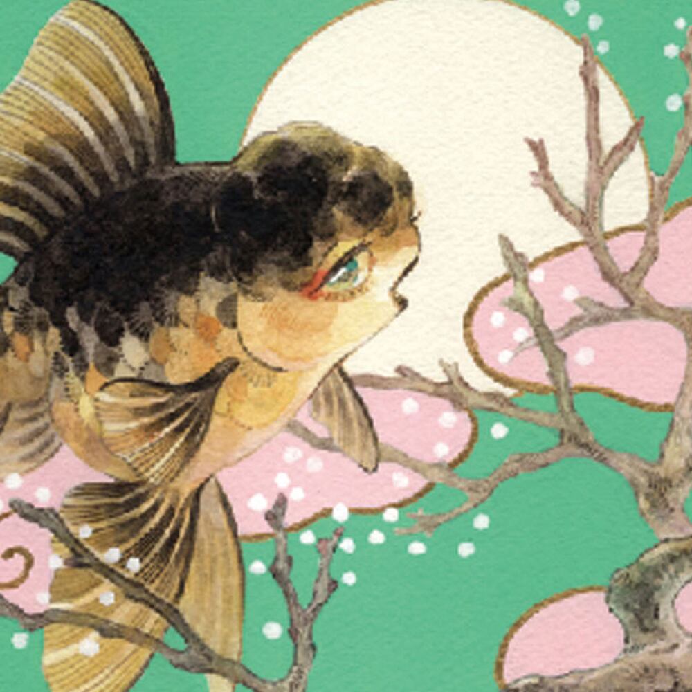 華やかでどこか艶やかな金魚たちの世界が特徴の「岩本夏樹」の作品が版画作品に。