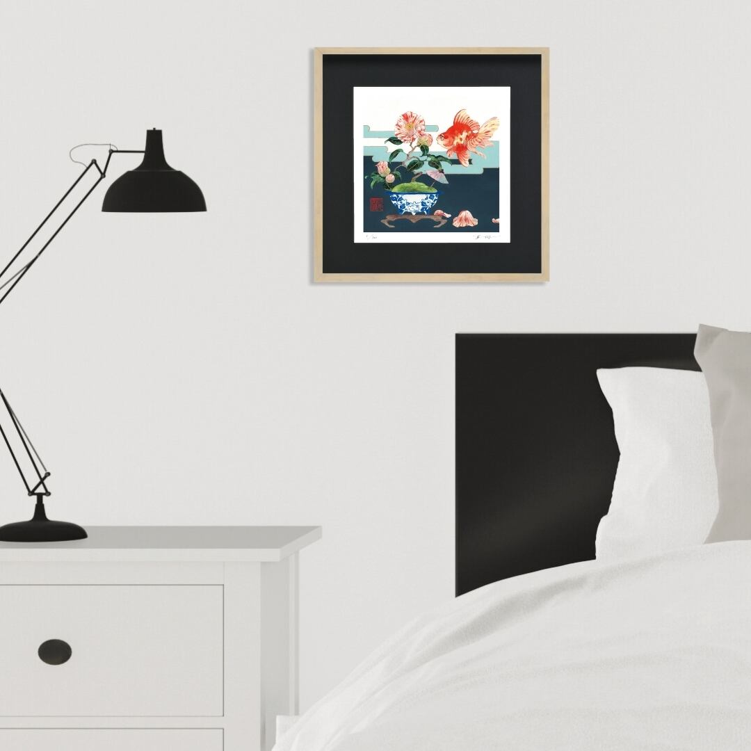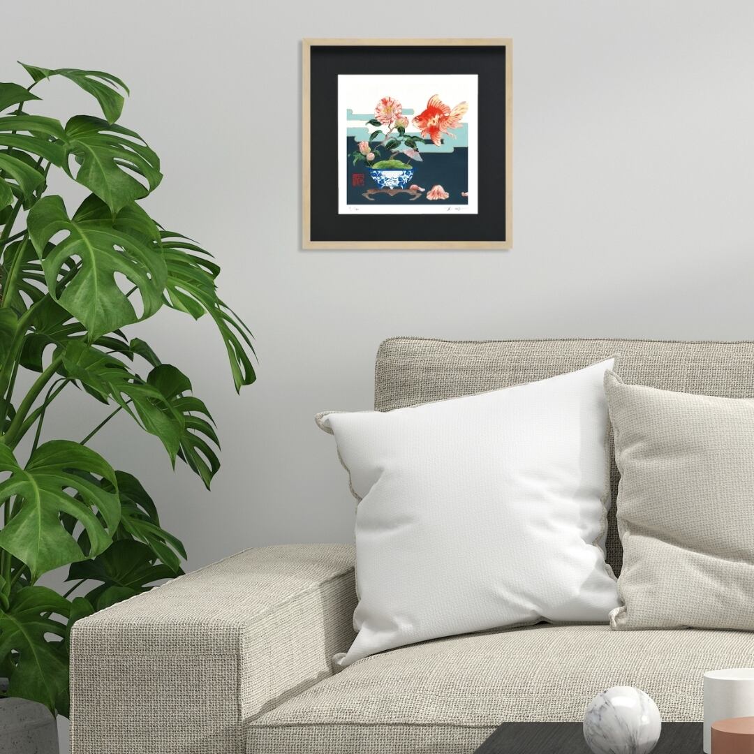 華やかでどこか艶やかな金魚たちの世界が特徴の「岩本夏樹」の作品が版画作品に。