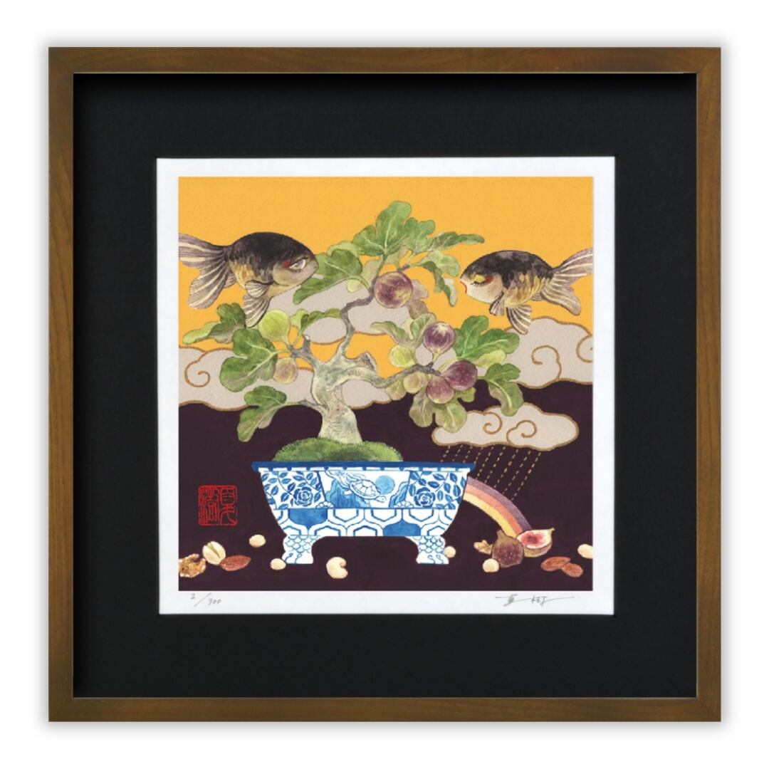 華やかでどこか艶やかな金魚たちの世界が特徴の「岩本夏樹」の作品が版画作品に。