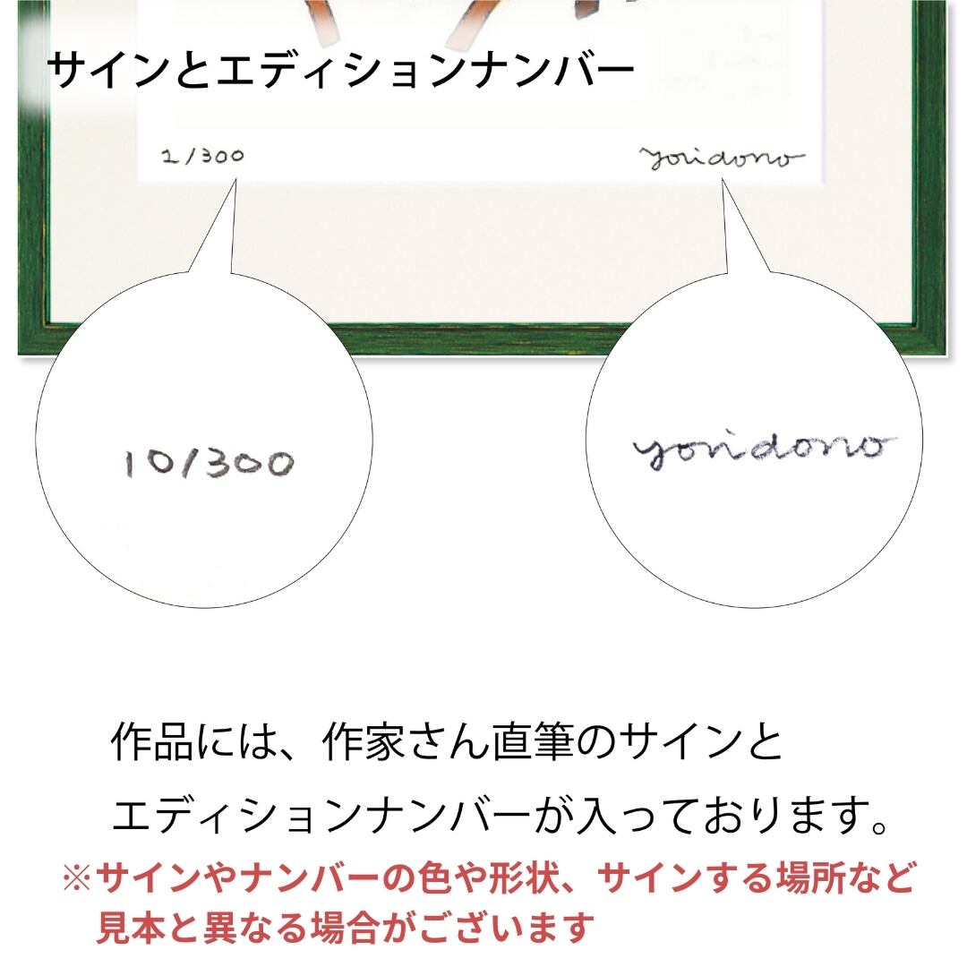 個性的なタッチと色使いが特徴の「yoridono」の作品が版画となって登場。