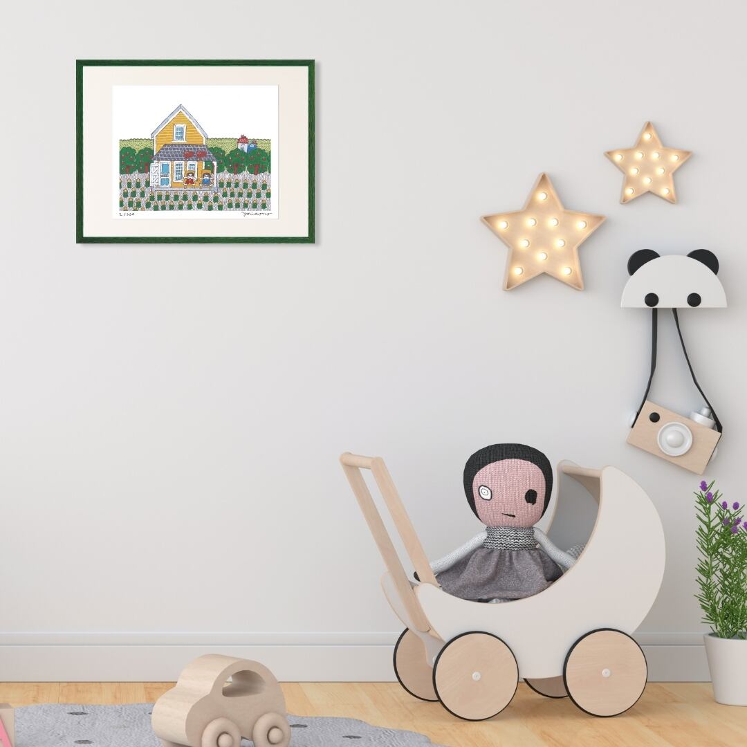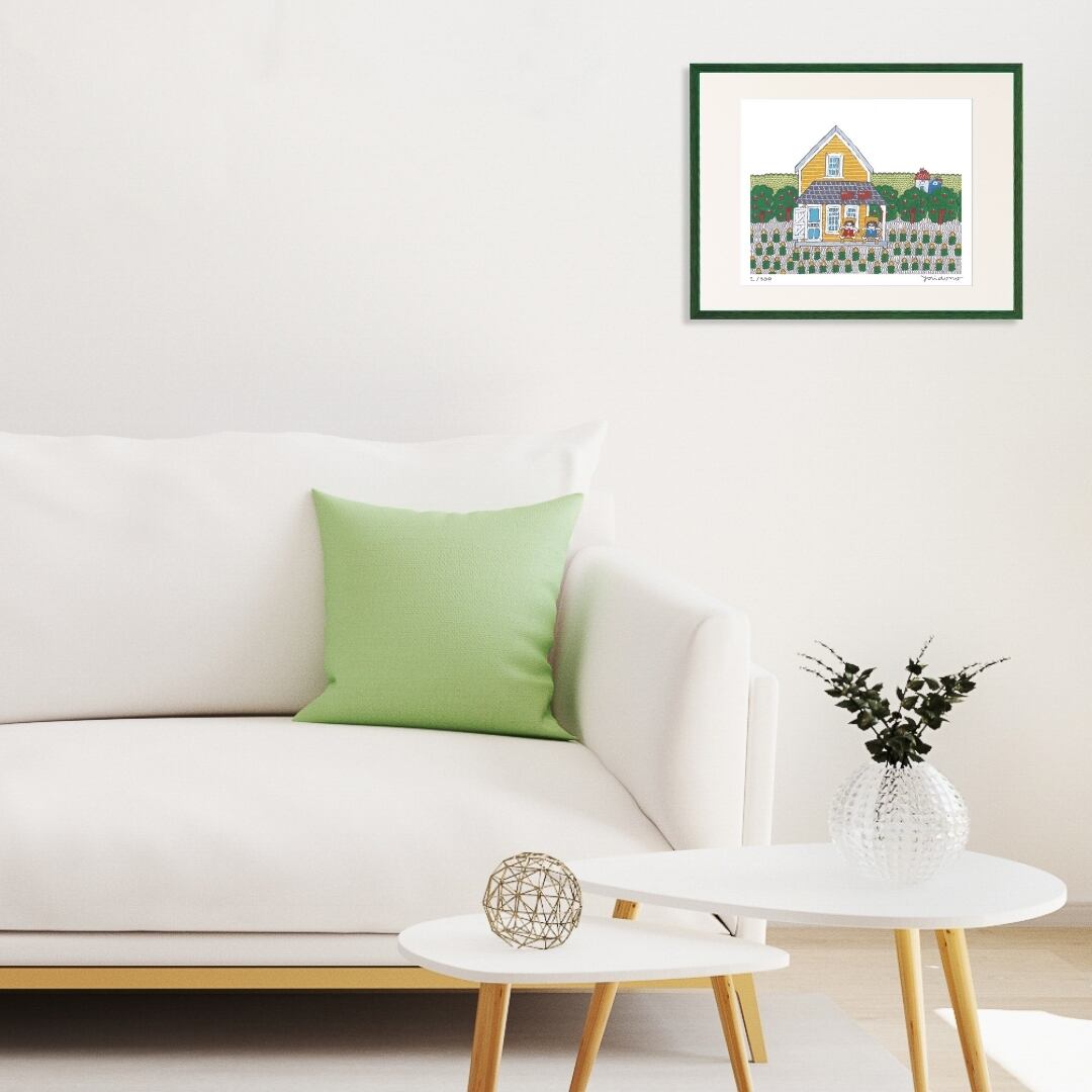 この額装品を部屋に飾ると、カラフルな背景と椅子に座るネコの穏やかな姿が、空間に優しい雰囲気を運んでくれます。可愛らしいイラストが日常の中にほっとする瞬間を生み出し、視線を向けるたびに心が和らぎます。リビングや子ども部屋に置けば、明るさや遊び心をプラスし、書斎や寝室なら癒しを与えてくれるインテリアアートとして活躍。鮮やかな色合いが室内を明るく演出し、暮らしに小さな彩りと安らぎを添えてくれる一枚です。アートならではの表現が、毎日の気分を前向きに整えてくれるでしょう。