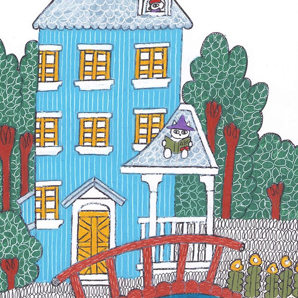 壁に飾ると、童話の一場面を切り取ったような色彩豊かな世界が空間を包み込みます。独特のタッチのネコがつくるユーモラスで可愛らしい雰囲気は、部屋全体に遊び心を添え、見る人の気持ちをふっと和ませてくれます。背景のカラフルな建物はアクセントとなり、白壁や木目調のインテリアとも調和しながら空間を明るく演出。帰宅して一息ついたときに視線を向けると、疲れた心をやさしく癒し、気分を軽やかに整えてくれるでしょう。インテリアアートとして日常に物語性を加える額装品であり、暮らしをより楽しく彩るアート作品です。