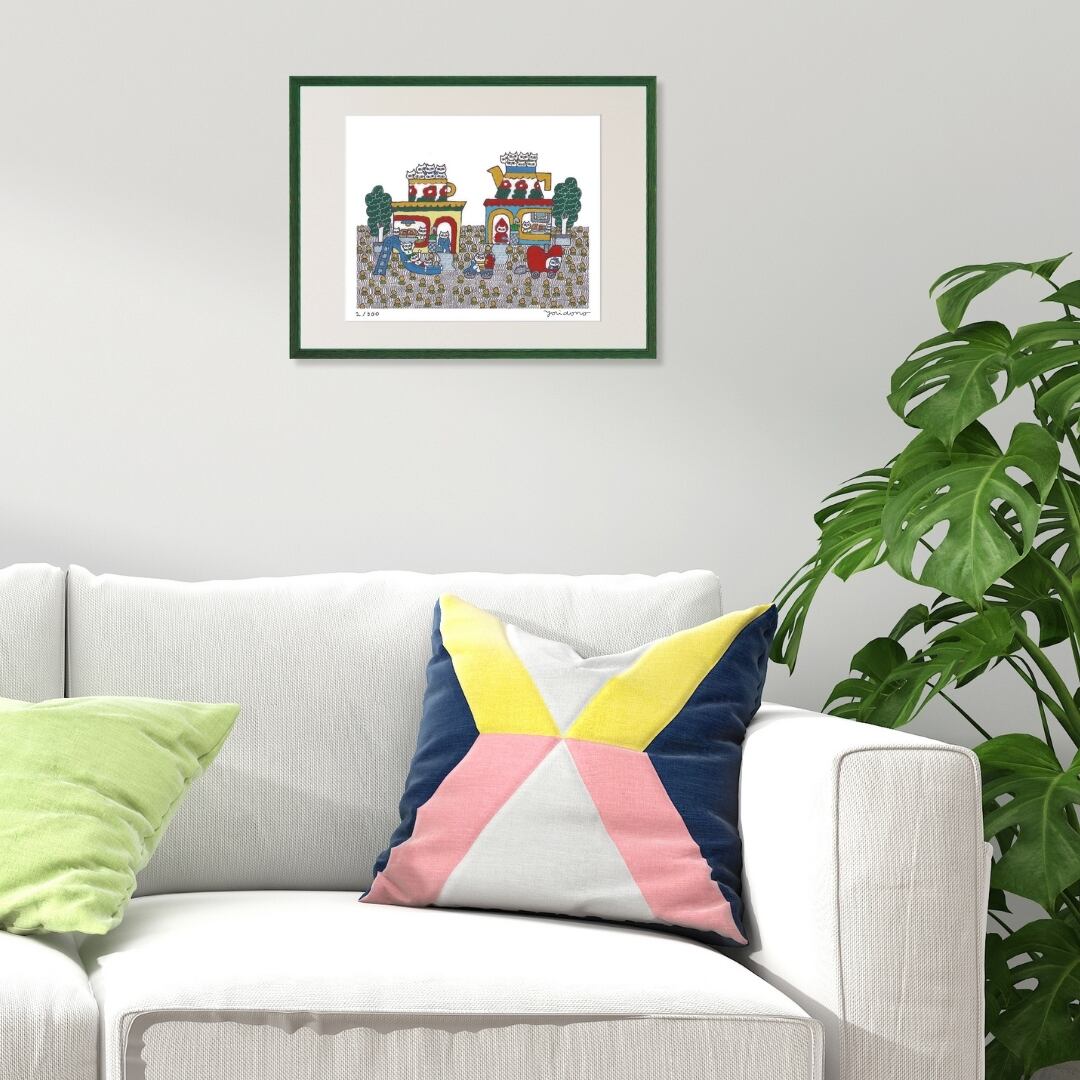 このイラストを部屋に飾ると、猫たちの無表情な姿が独特のユーモアを醸し出し、空間にやさしい笑いと安らぎを与えてくれます。カップやポットに詰まった猫たちの姿や、一軒家の前で生活する猫たちのシーンは、日常の中にある小さな楽しみを思い出させるよう。インテリアアートとして空間にアクセントを添え、額装品ならではの高級感が部屋全体の雰囲気を整えます。視線を向けるたびに気持ちが和み、日々の暮らしにリズムをつけるアートとして、長く楽しめる一枚です。