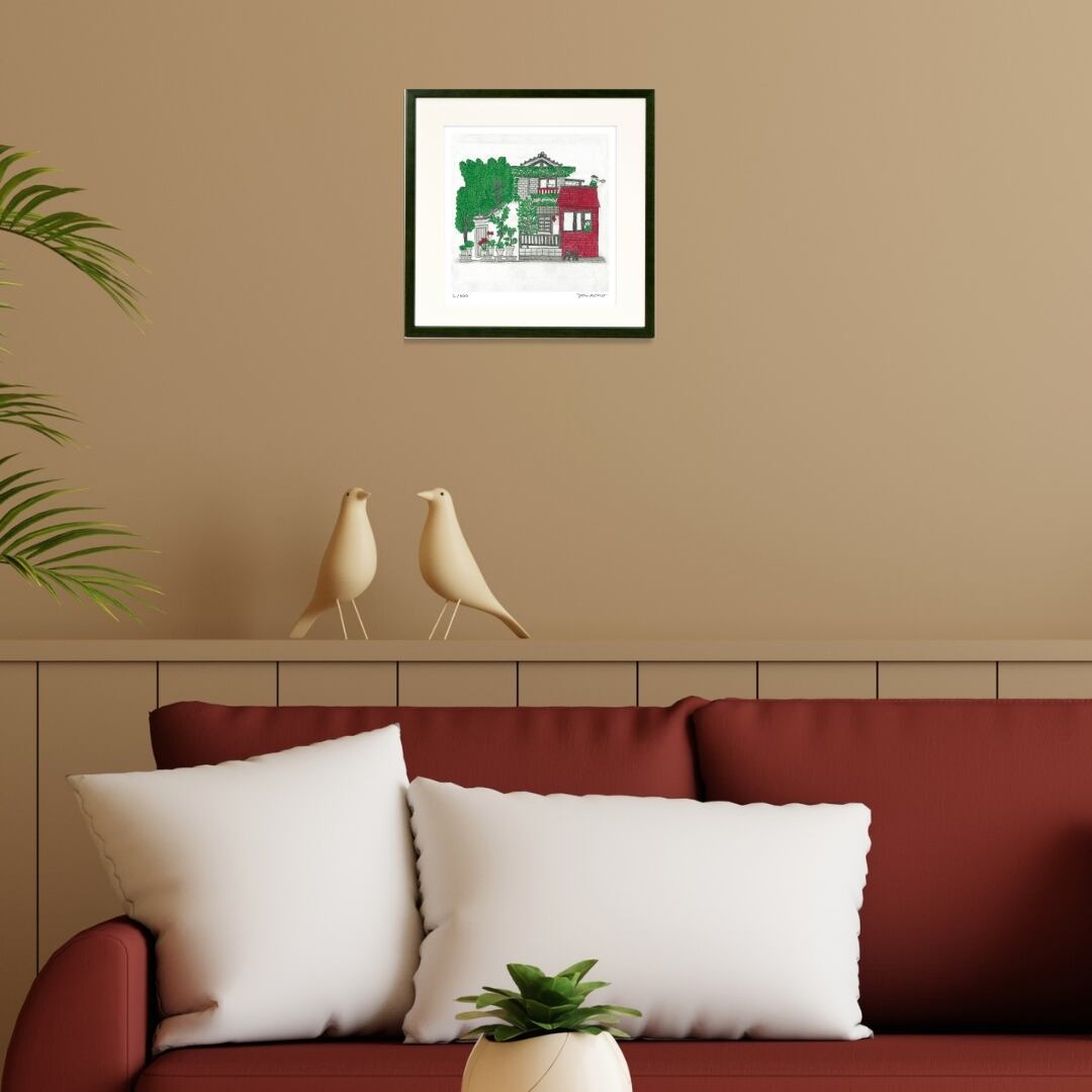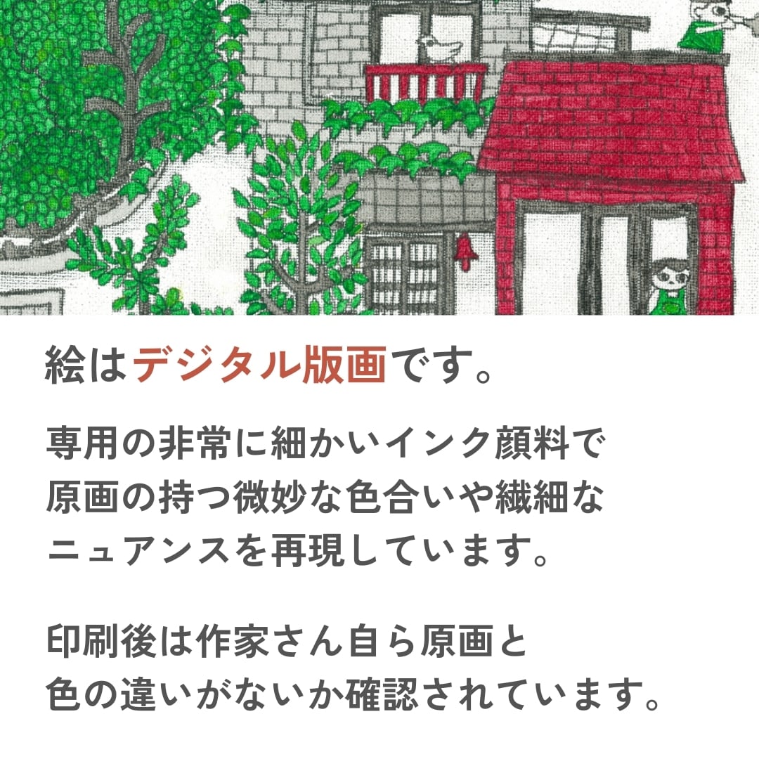 鮮やかなグリーンと遊び心あるモチーフは、部屋に清涼感と軽やかさを与えます。まるで身近な街並みの上空に広がる、誰もが見逃してしまいそうな小さな奇跡を描いたアートは、日々の暮らしに癒やしと発見をもたらします。額縁付きなので、届いた瞬間からリビングや寝室のアクセントとして活躍。視線を上げるたびに、ちょっとした旅の気分を楽しめるインテリアアートです。