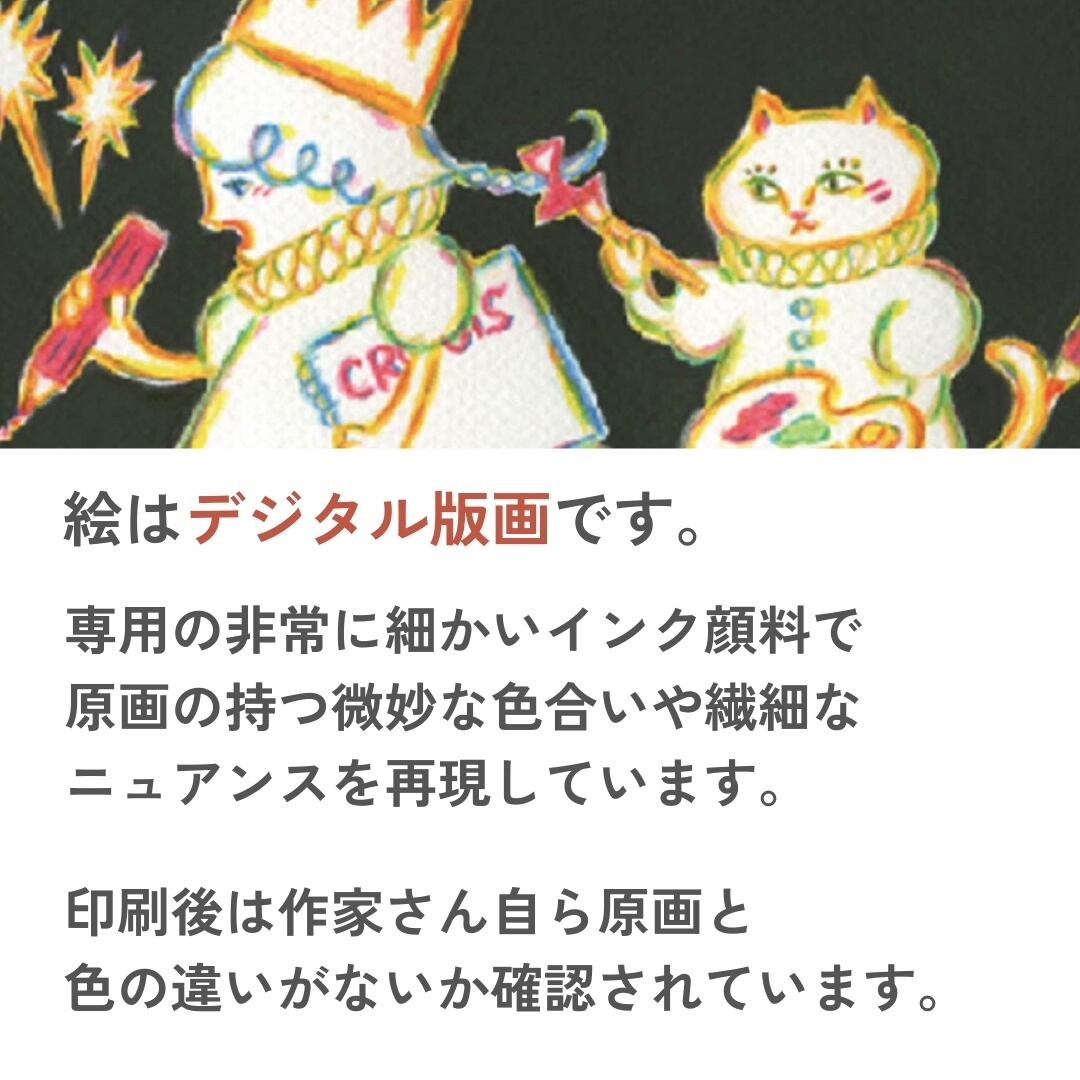 シックな黒背景に鮮やかな猫たちが浮かぶデザインは、空間にユニークな個性を与えてくれます。額入りアートとして飾れば、リビングや子供部屋に物語性を感じる彩りを加え、訪れる人の目を惹きつけます。かわいらしさの中に神秘的な雰囲気を併せ持つため、インテリアに不思議な魅力をプラスするアクセントとしても最適です。大人の空間にも遊び心を与えつつ、日常をほんの少し魔法のように変えてくれるアート作品です。