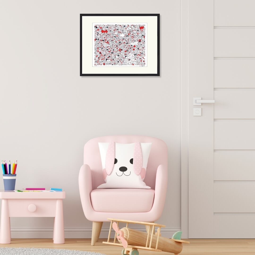 赤と黒の洗練された色使いが、インテリアにモダンな印象をプラスします。季節感のある額入りアートを取り入れることで、部屋全体が明るく華やぎ、日常に特別なアクセントを添えてくれます。壁に掛けるだけで空間にストーリー性が生まれ、眺めるたびに楽しさや温かさを感じられるのが魅力です。シンプルながら個性的なデザインは、リビングやダイニングに飾れば会話のきっかけにもなり、居心地のよい雰囲気を演出してくれます。