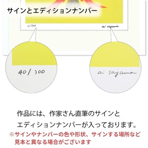図柄ごとに作家のサイン、エディションナンバーつきの版画作品で数量限定販売になっています。
