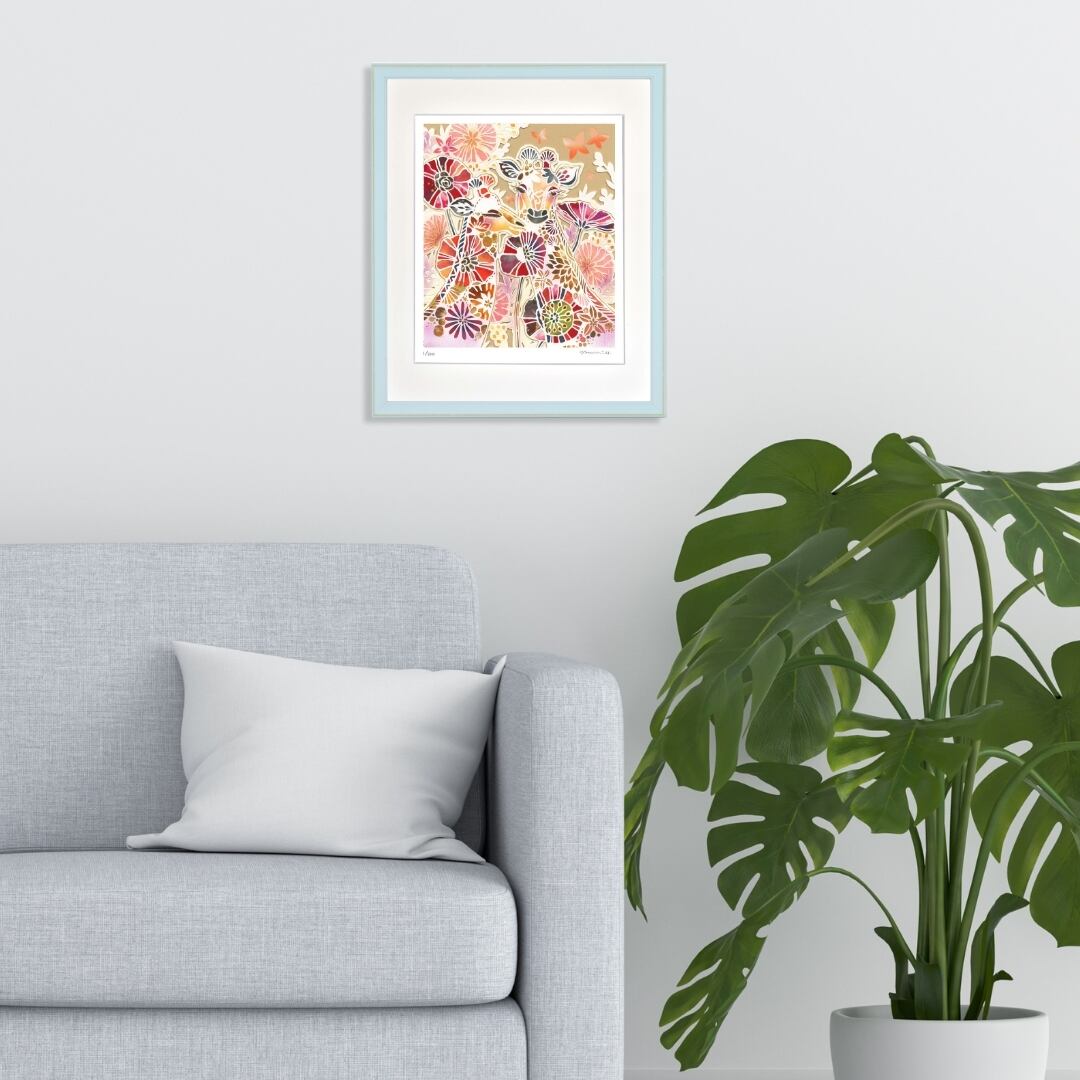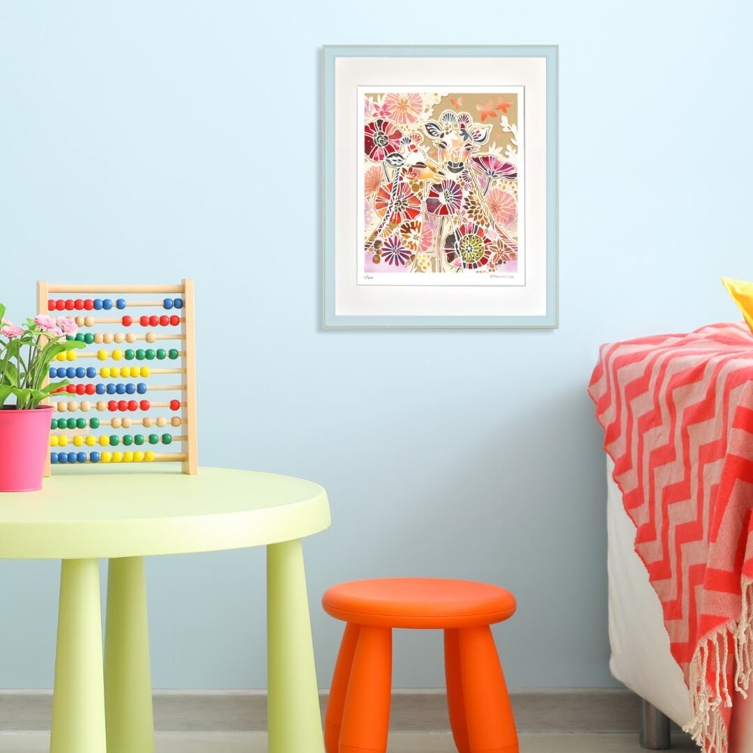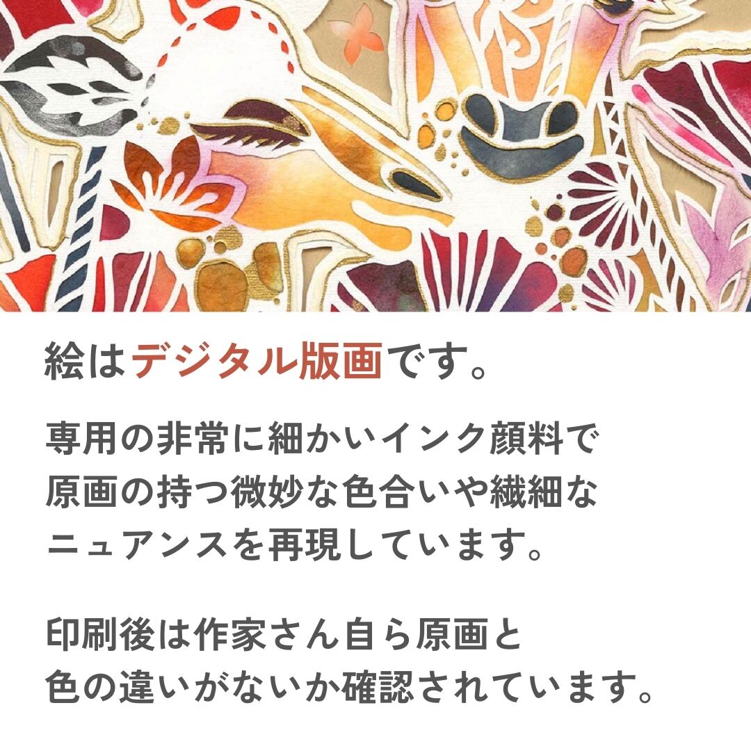 本作はインテリアアートとして空間を華やかに彩う一枚。額縁付きの仕様なのでそのまま壁に掛けられ、日常に特別なアクセントを添えてくれます。動物と花のイラストが調和するこのアートは、穏やかな癒しと鮮やかな華やかさを同時に届けてくれる存在。柔らかな色彩が広がり、空間全体をやさしく包み込むことで、心地よい雰囲気を演出してくれるでしょう。