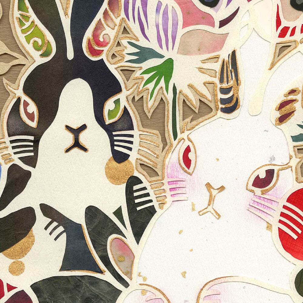 「作る・飾る・ときめく」をテーマにしており、伝統的で新しい切り絵表現を常に追求し、美しい色彩の重なり合いを魅せられるような作品です。