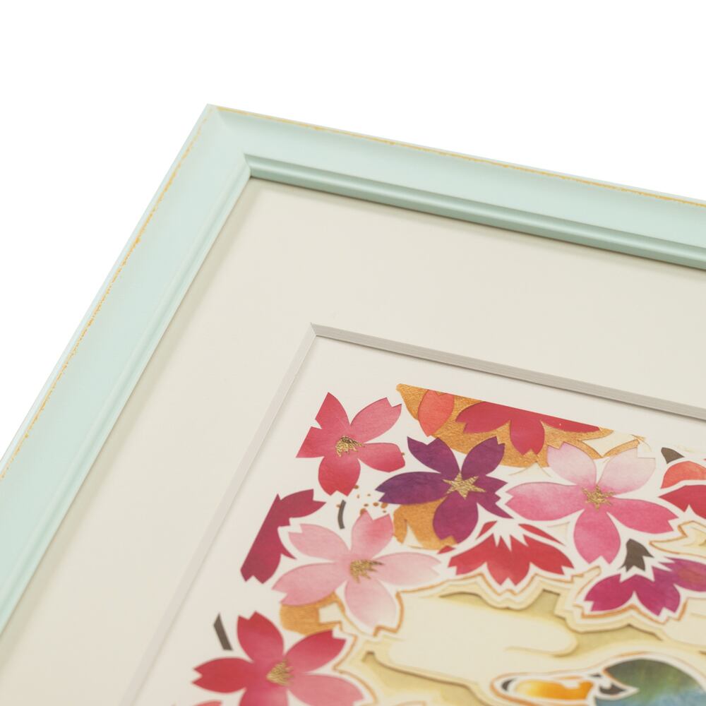 桜の華やかな色彩と優しい雰囲気を併せ持つこのイラストは、空間に春のような明るさをもたらします。和の趣を感じさせるデザインは、モダンなインテリアから和室まで幅広く調和し、インテリアアートとして高い魅力を発揮します。額縁付きの仕立てにより飾りやすく、壁面を彩るアクセントとして日常に心地よい安らぎを添えるでしょう。