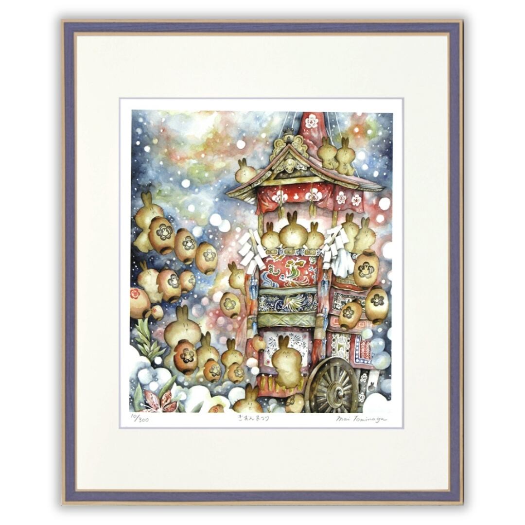 イラストレーター「とみながまい」が描く、透明水彩絵具によって表現された季節の風景と楽しげな動物たちが版画作品になりました。