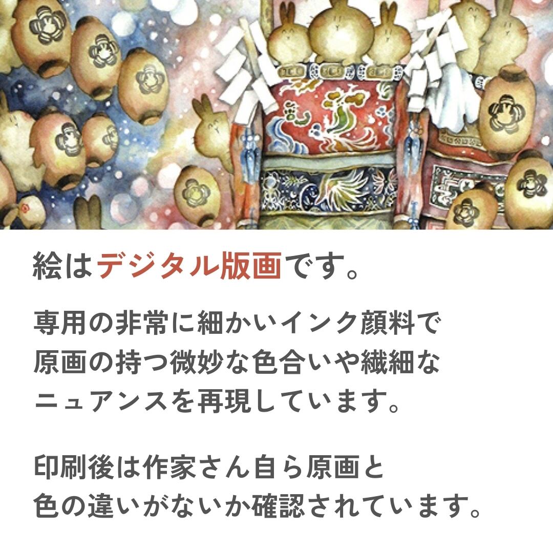 この絵の中では、うさぎたちの小さな背中に、京都の風と心がやさしく宿っているようです。