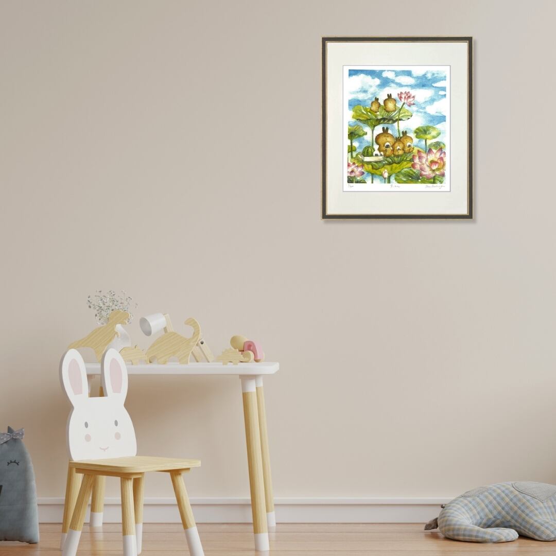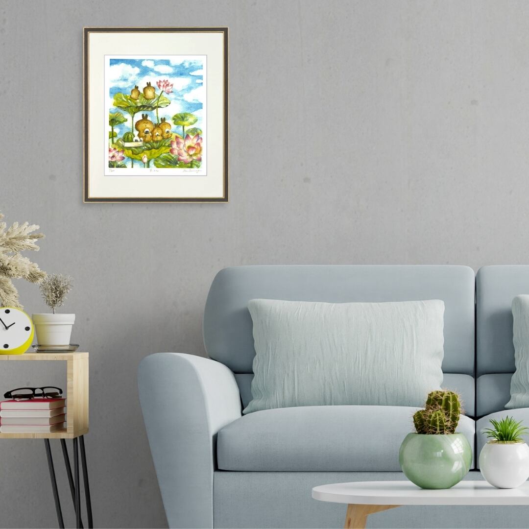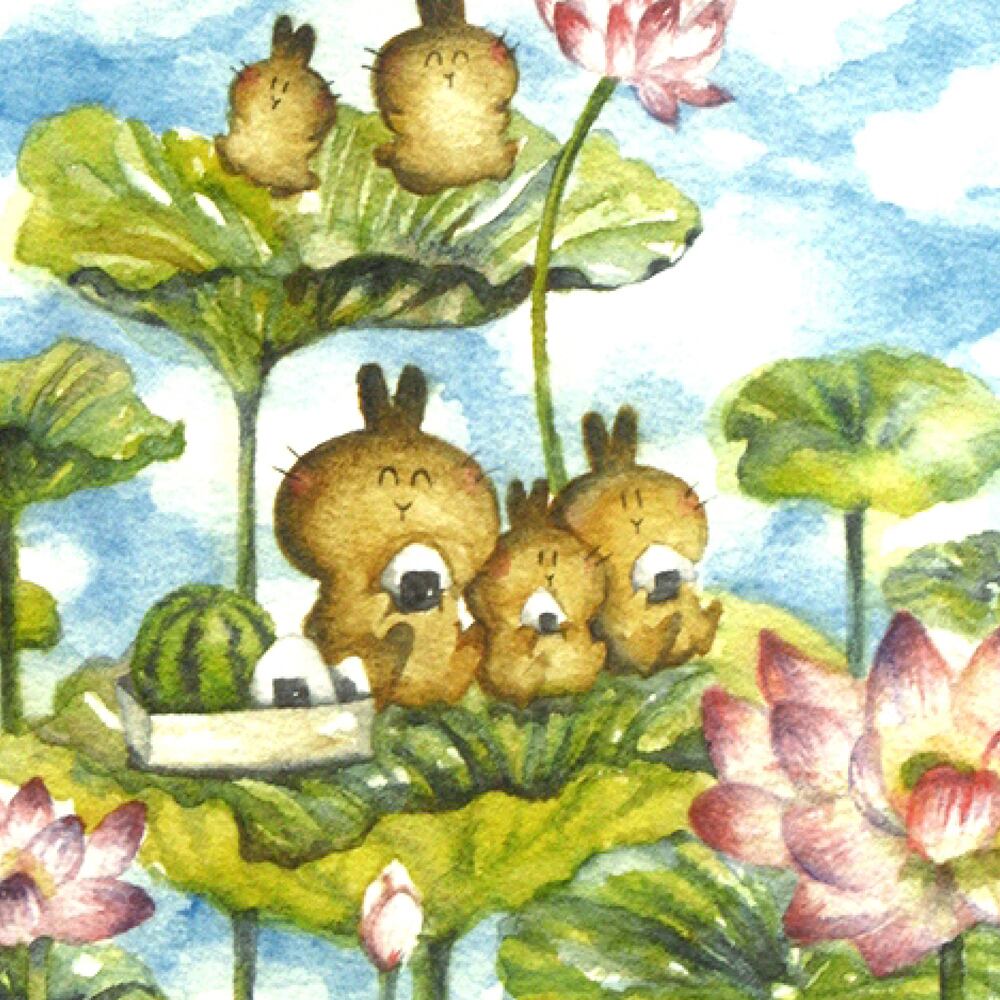 うさぎたちの表情や蓮の花の瑞々しさが、日常に小さな癒しを添えてくれます。