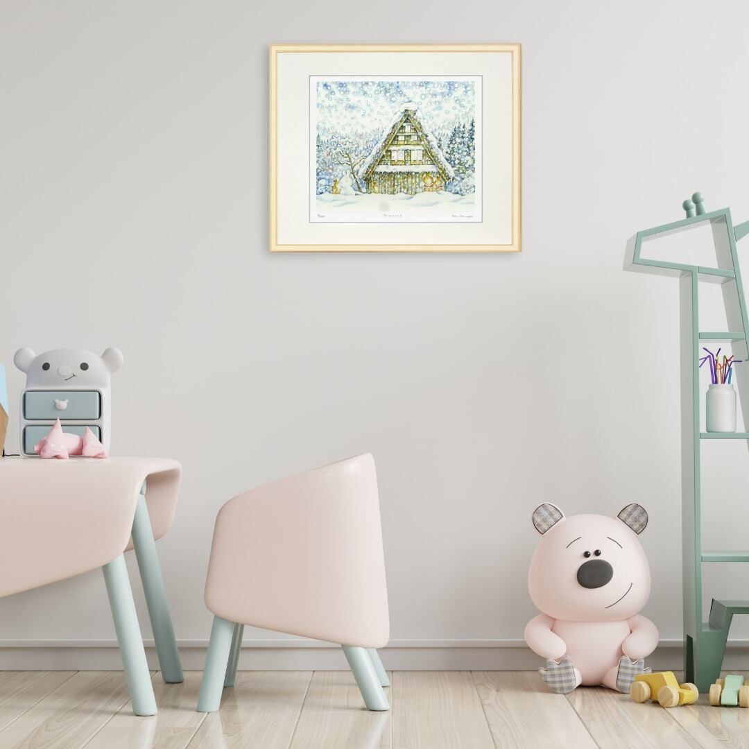 やわらかな雪景色を水彩で表現した、癒しのインテリアアートです。