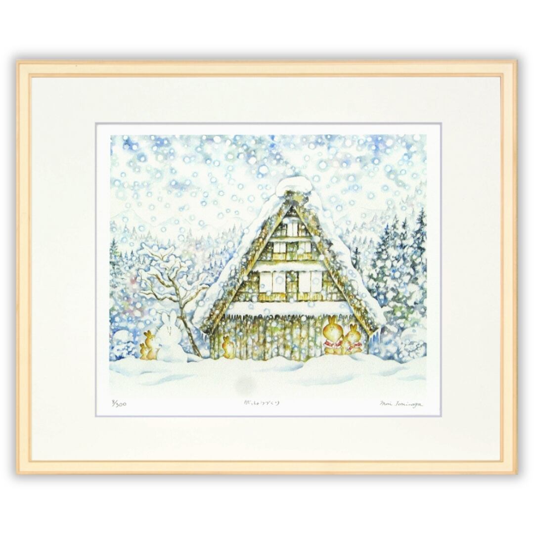 イラストレーター「とみながまい」が描く、透明水彩絵具によって表現された季節の風景と楽しげな動物たちが版画作品になりました。