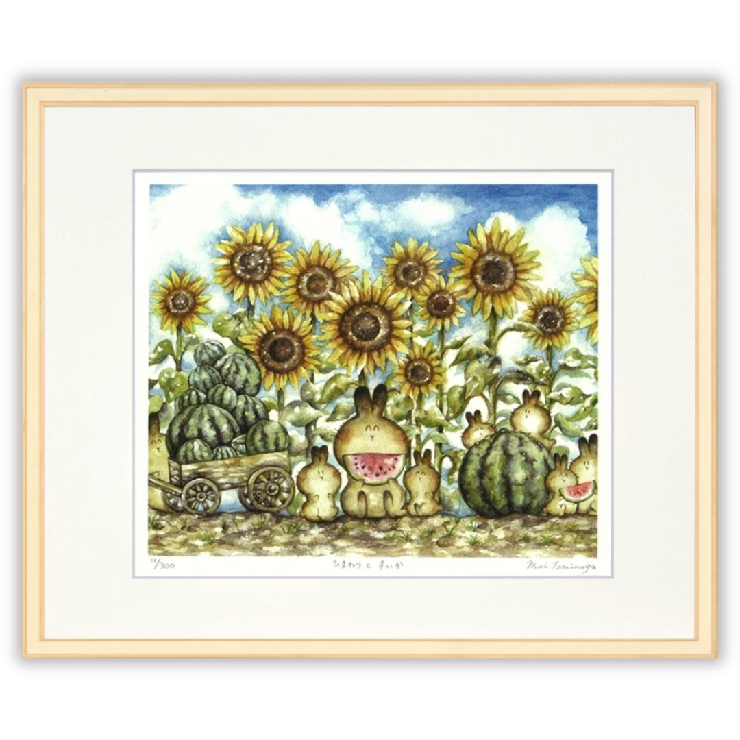 イラストレーター「とみながまい」が描く、透明水彩絵具によって表現された季節の風景と楽しげな動物たちが版画作品になりました。