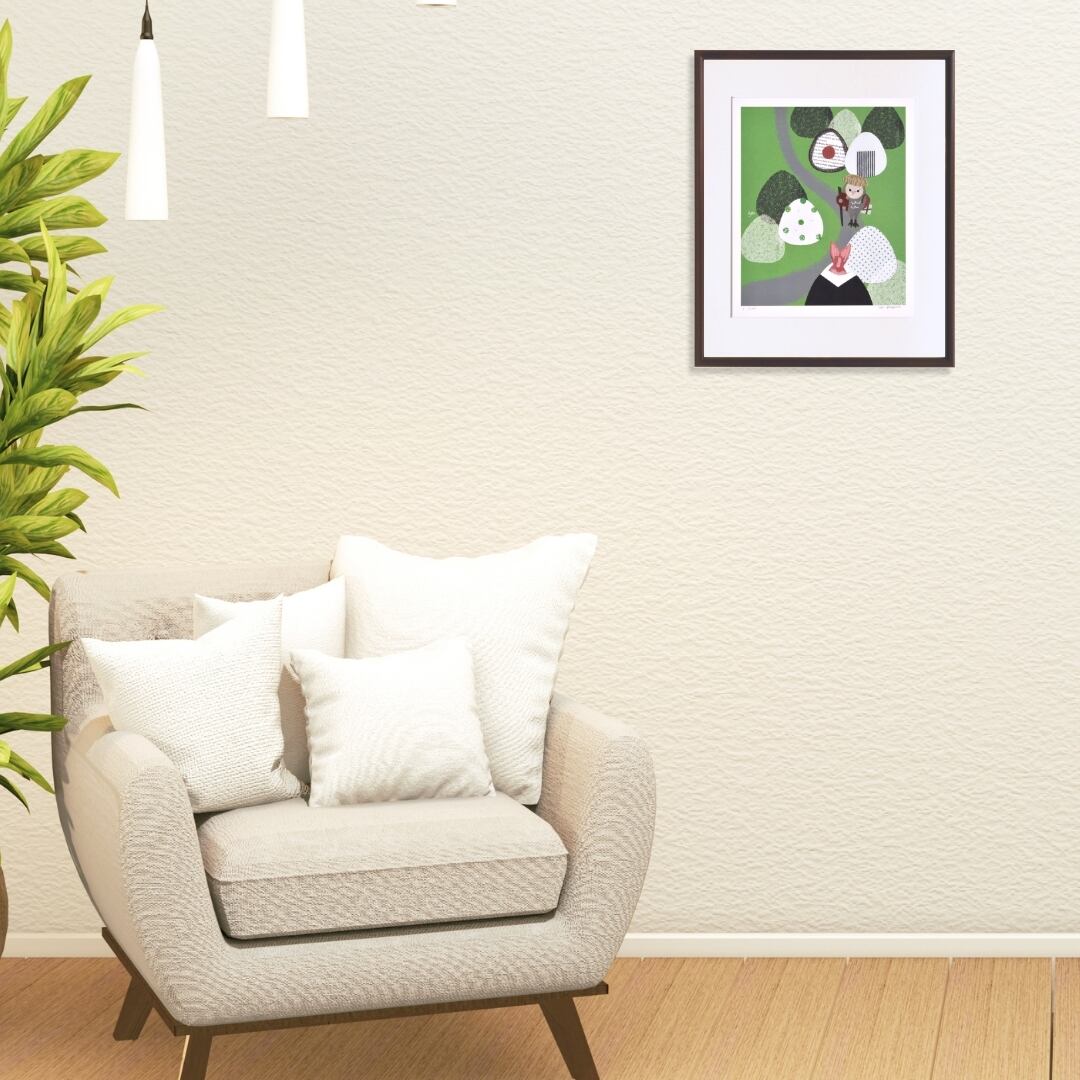 愛らしいモチーフが散りばめられたこのイラストは、空間を明るく楽しい雰囲気に変えてくれるインテリアアートです。ユーモラスなタッチと柔らかな色合いが日々の暮らしに潤いを与え、飾るだけで和やかな気分にさせてくれます。額入りアートとして仕立てられているため、リビングやダイニング、子ども部屋にもすぐ飾れ、家族や訪れる人々の会話のきっかけにもなるでしょう。日常に温かみと遊び心を運んでくれる一枚です。
