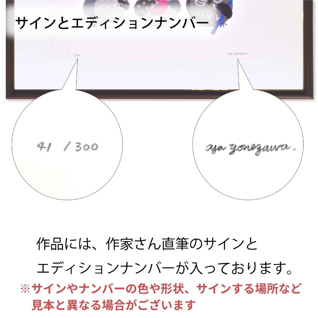 図柄ごとに作家のサイン、エディションナンバーつきの版画作品で数量限定販売になっています。