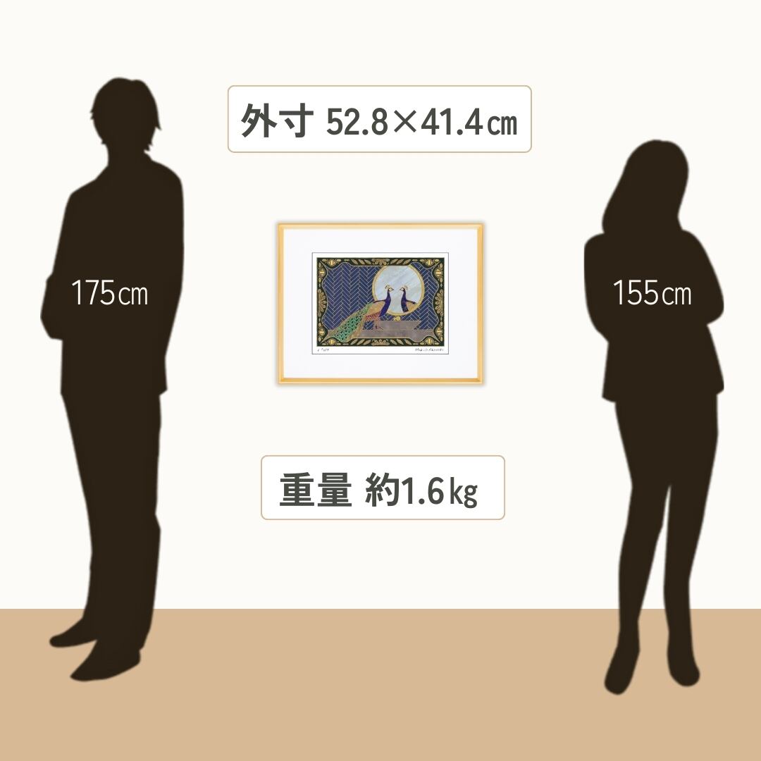 この額縁付きアートをお部屋に飾れば、空間は一瞬で上質なギャラリーのように変わります。孔雀の持つ「美と繁栄」の象徴性が、日常にポジティブな気をもたらし、見るたびに心が整う感覚を与えてくれます。深い青と金の輝きがインテリアを引き立て、リビングや寝室、玄関など、どんな場所にも高貴な印象をプラス。静かな存在感で空間全体を格上げする、まさに大人のためのインテリアアートです。芸術的なイラストが暮らしに美しい余韻を添え、毎日を特別な時間にしてくれます。