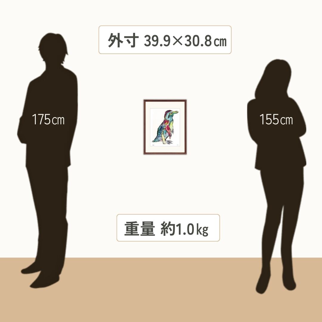 この額縁付きイラストを飾ると、ペンギンの持つユーモラスで愛らしい雰囲気が空間を和ませてくれます。カラフルな配色が壁面に映え、リビングや子ども部屋、ワークスペースに明るさと遊び心をプラス。ペンギンは仲間との絆を大切にする動物としても知られ、暮らしに温かさと安心感を与えてくれるモチーフです。アートとしての個性が強く、額縁付きでそのまま飾れるため、手軽に空間を彩るインテリアアートとして最適です。