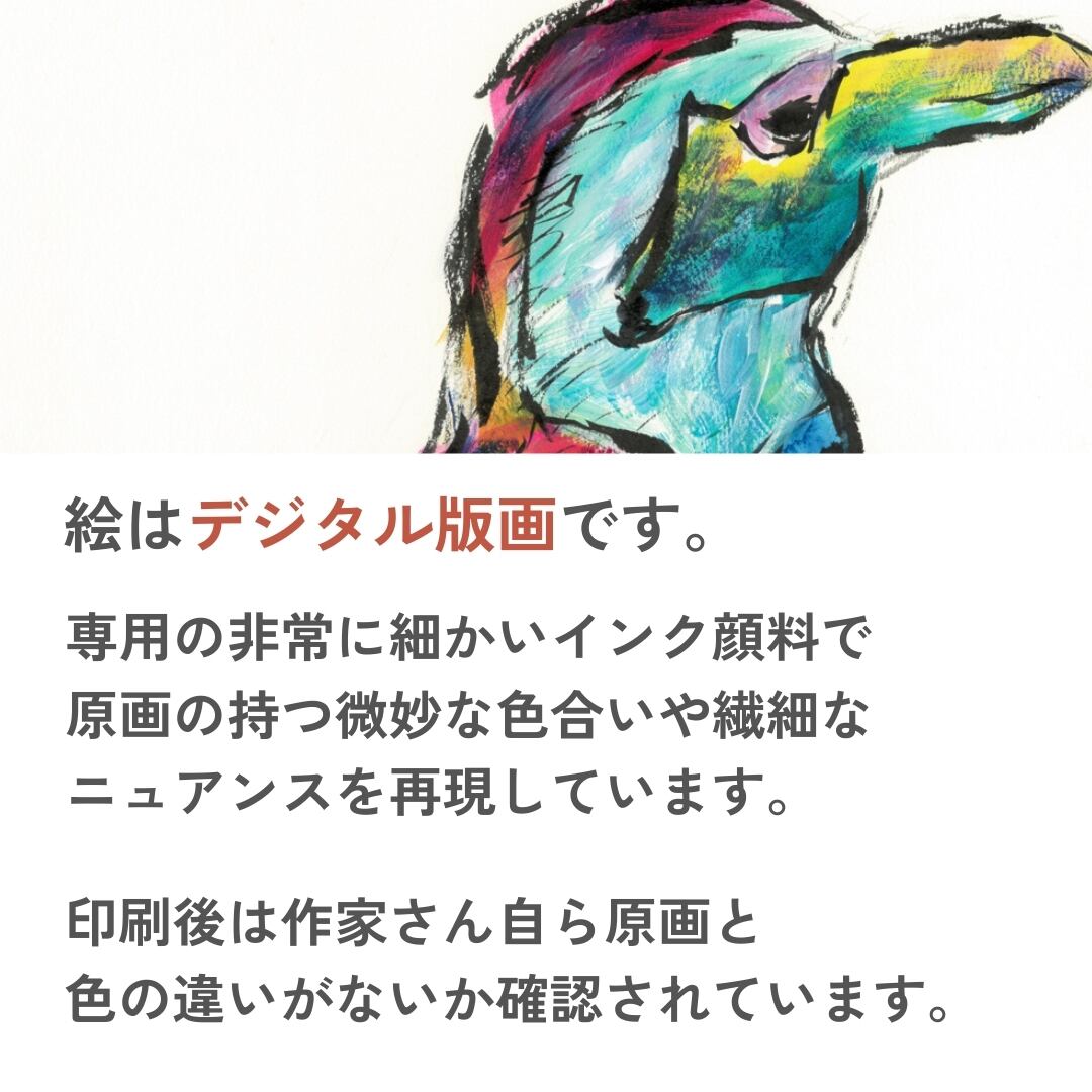 カラフルな動物の絵が特徴。独特の色彩感覚で作品を仕上げています。