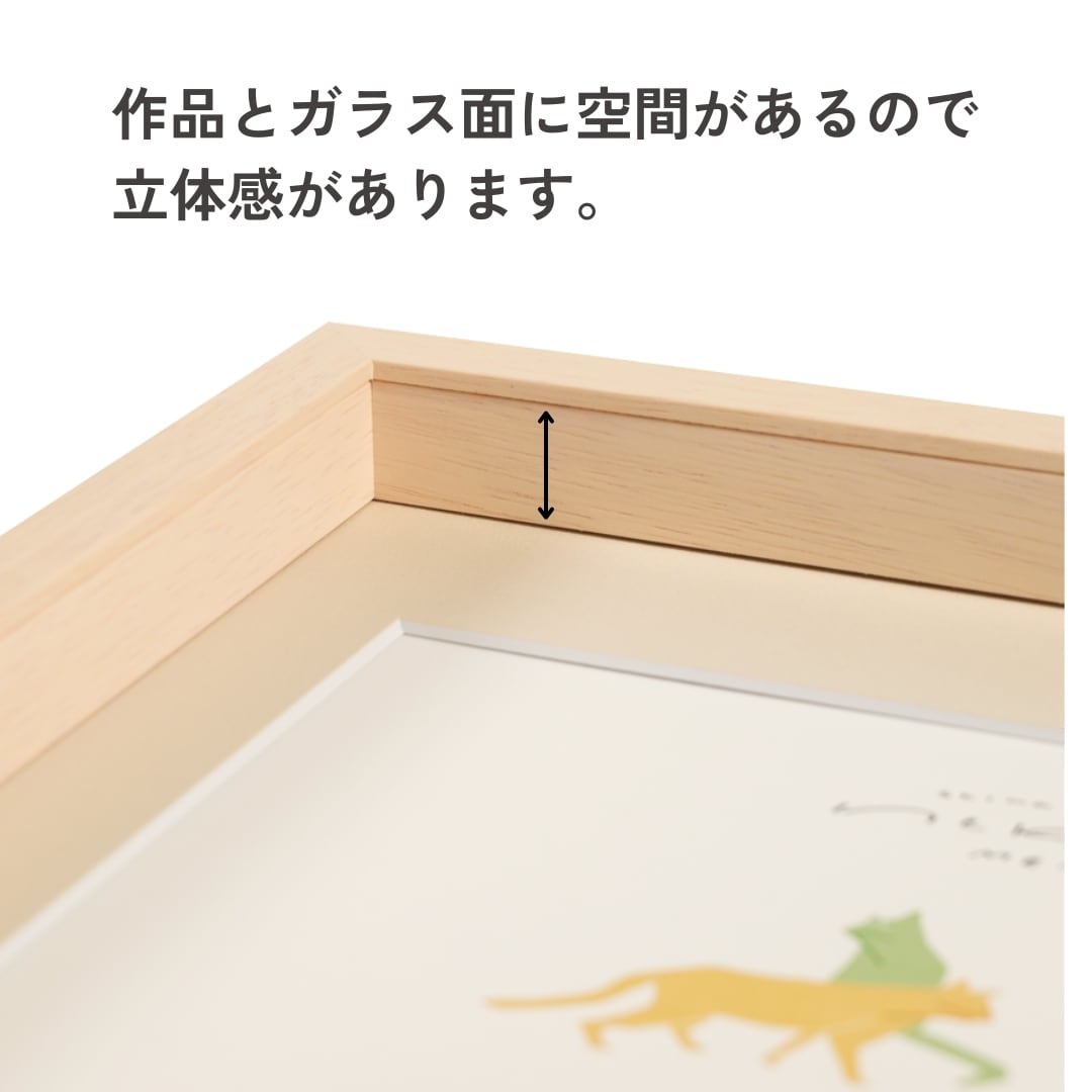 清潔感のある白い余白と、やわらかなベージュのフレームが調和し、空間に軽やかな明るさを与えます。