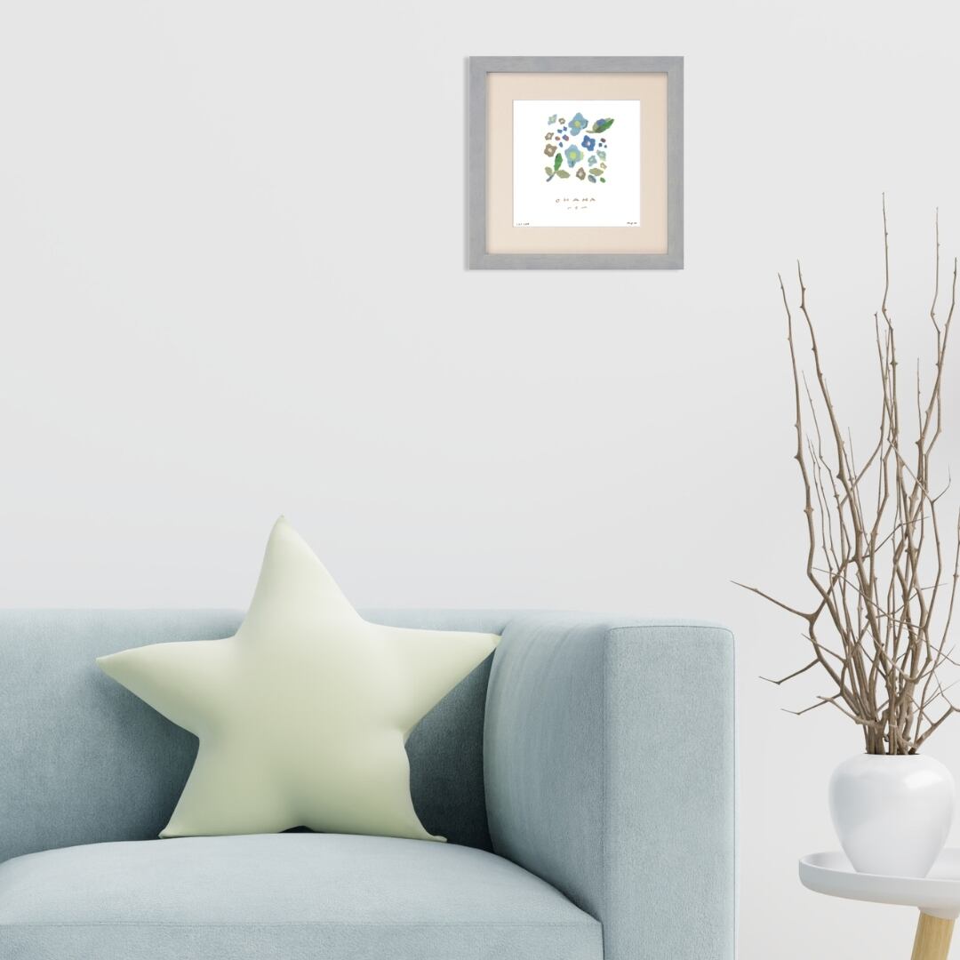 リビングや玄関、ワークスペースにもおすすめのインテリアアートで、忙しい時間の合間にもふと深呼吸したくなるような、穏やかな空気を運んでくれる一枚です。