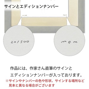 図柄ごとに作家のサイン、エディションナンバーつきの版画作品で数量限定販売になっています。