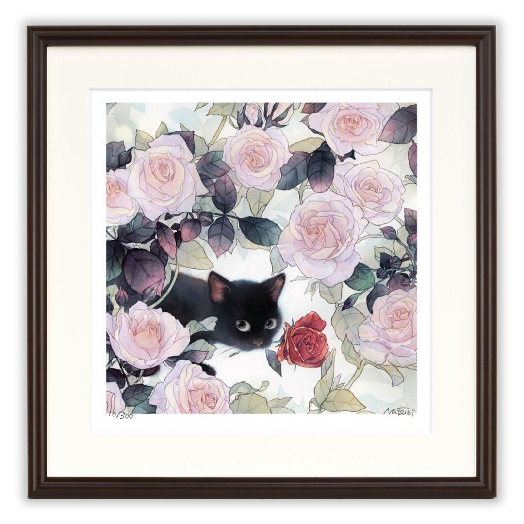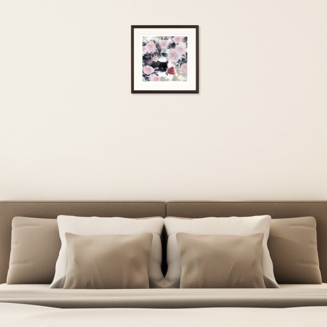 華やかなバラの花々と黒猫の組み合わせは、空間に上品さと可愛らしさを添えてくれます。リビングや寝室に飾れば、優しい色合いが柔らかい光を引き立て、日常に穏やかな癒しを与えます。シンプルなインテリアにも、クラシックな雰囲気のお部屋にも自然に調和し、空間をエレガントに演出。花と動物という普遍的なモチーフが織りなす額入りアートは、世代を問わず楽しめる魅力を持ち、贈り物としても喜ばれる一枚です。