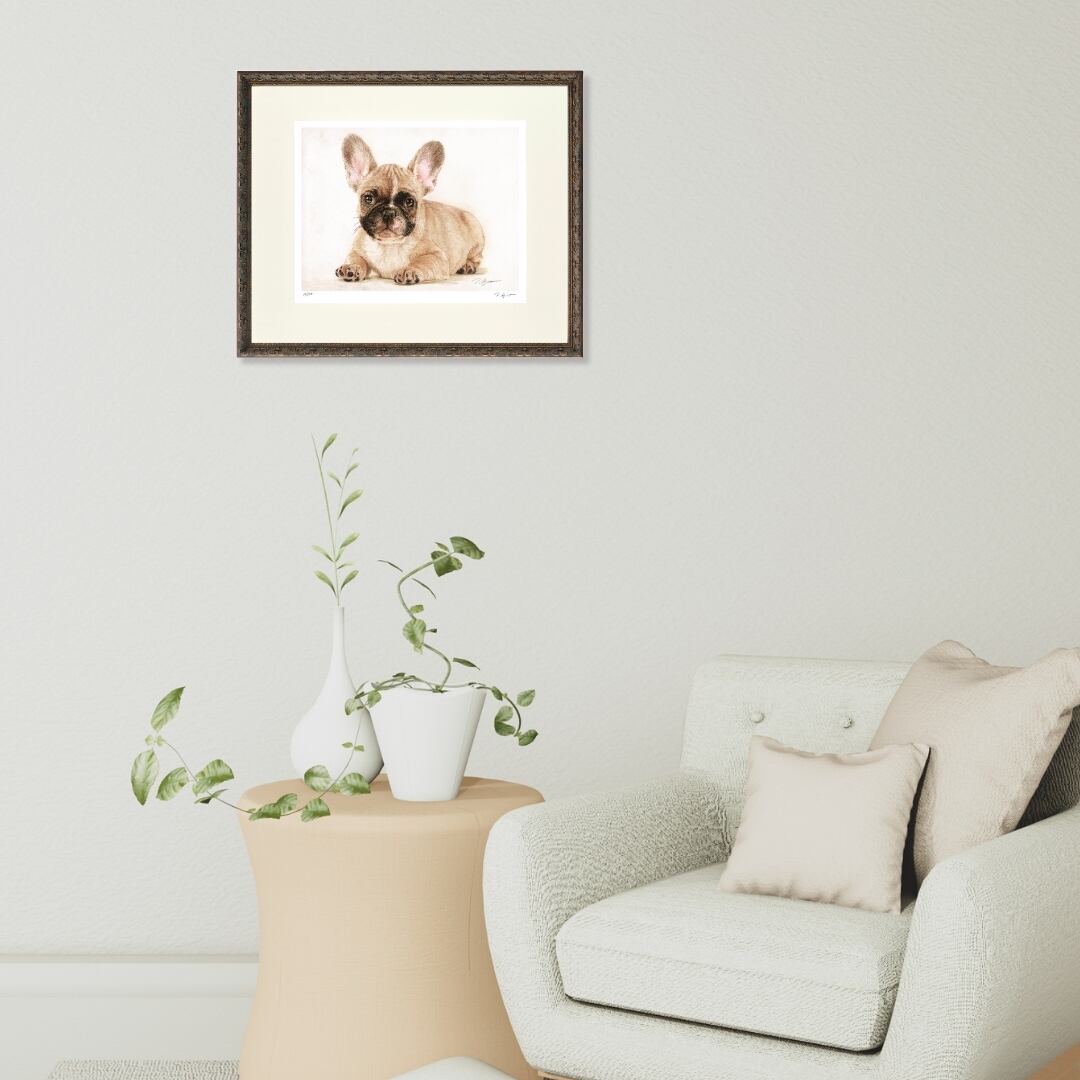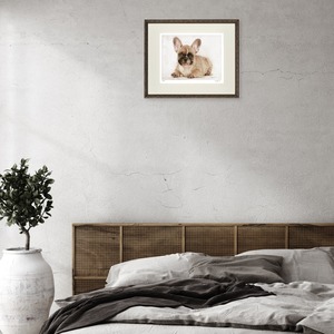 この額縁付きアートを飾ることで、空間に優しさと温もりが広がります。小さなフレンチブルドッグの穏やかな姿が、リビングや玄関、子ども部屋などに癒しのアクセントを加え、見るたびに心がほっと安らぎます。鉛筆画特有の柔らかな陰影と淡い色彩が、どんなインテリアにも自然に馴染み、落ち着いた雰囲気を演出。動物好きな方へのギフトや、ペットを愛するご家庭にもおすすめのインテリアアートです。日常の中に小さな幸福を感じさせてくれる、温かな一枚です。